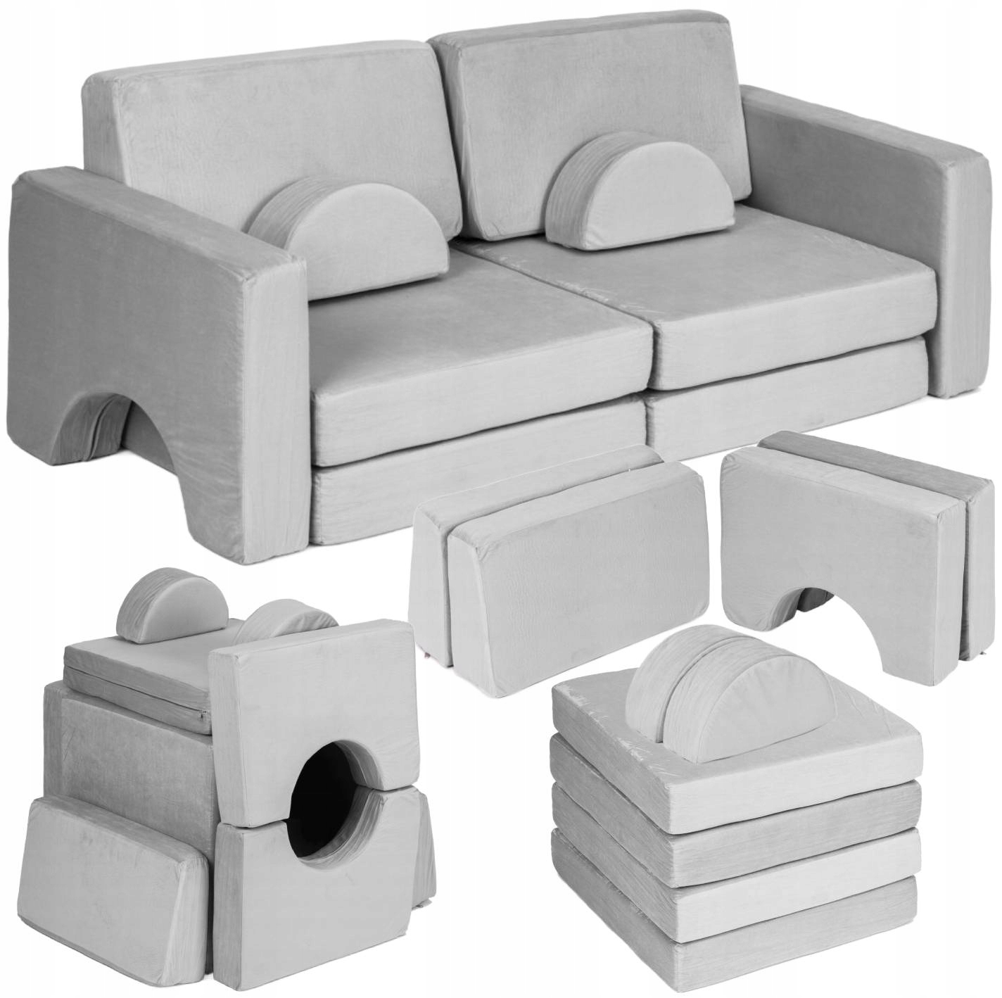 Модульная конструкция и подушки различной формы дают детям неограниченные возможности для создания различных конструкций, благодаря которым ваш ребенок сможет построить дом, замок или транспортное средство, сидя на удобном диване. Этот вид игры доставляет детям большое удовольствие и в то же время развивает их воображение и физические навыки.