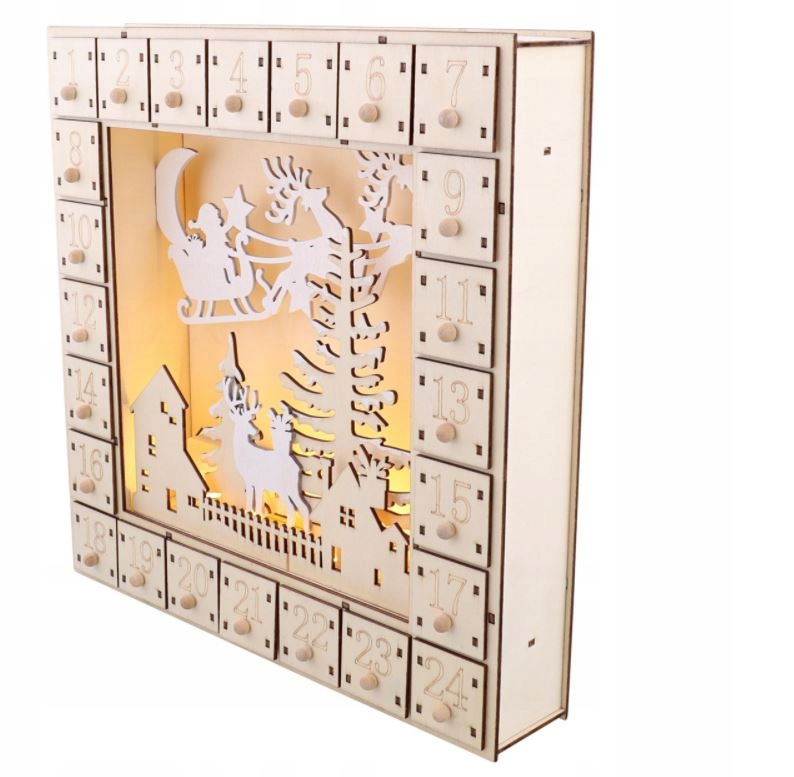 БОЛЬШОЙ ДЕРЕВЯННЫЙ СВЕТОДИОДНЫЙ АДВЕНТ-КАЛЕНДАРЬ