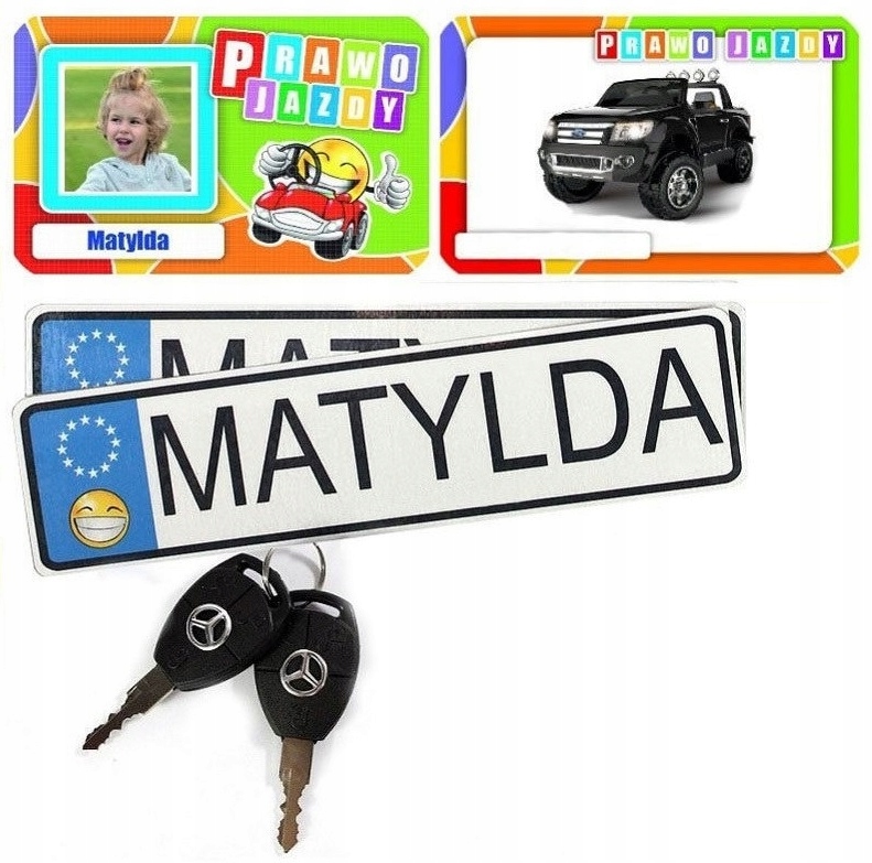 - Кроме того, вы также получите две наклейки, стилизованные под номерные знаки, естественно с именем вашего ребенка.