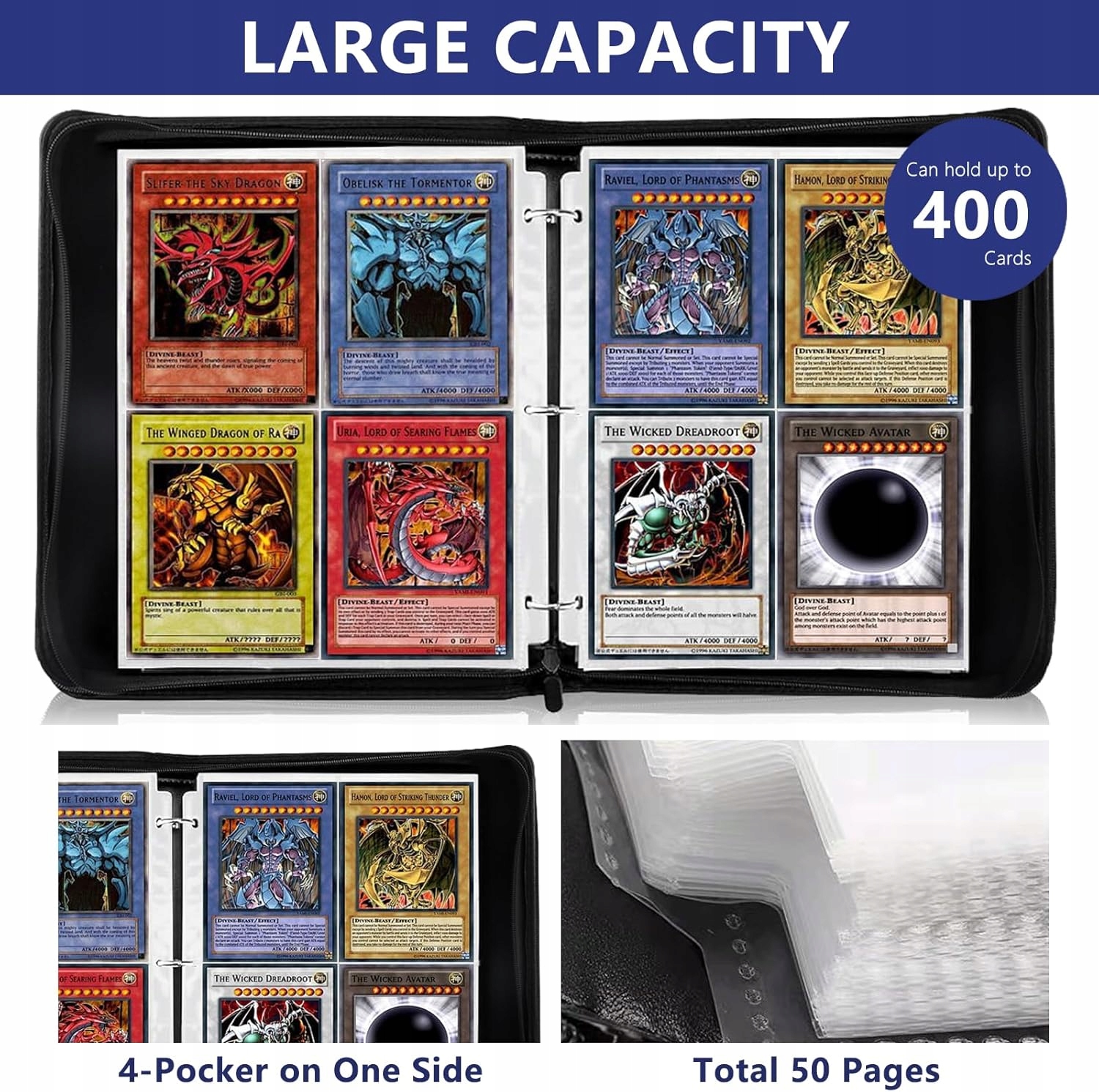 - 【Большая емкость】 Альбом для коллекционных карточек Большая емкость для хранения, включает 50 высококачественных съемных карманов, в общей сложности вмещает 400 коллекционных карточек, Карты можно хранить с обеих сторон, 4 кармана с каждой стороны, Никогда не беспокойтесь о потере карты снова, Альбом коллекционных карточек дает вам достаточно места для организации ваших карточек.