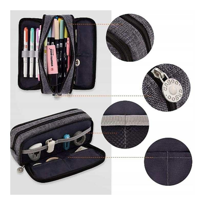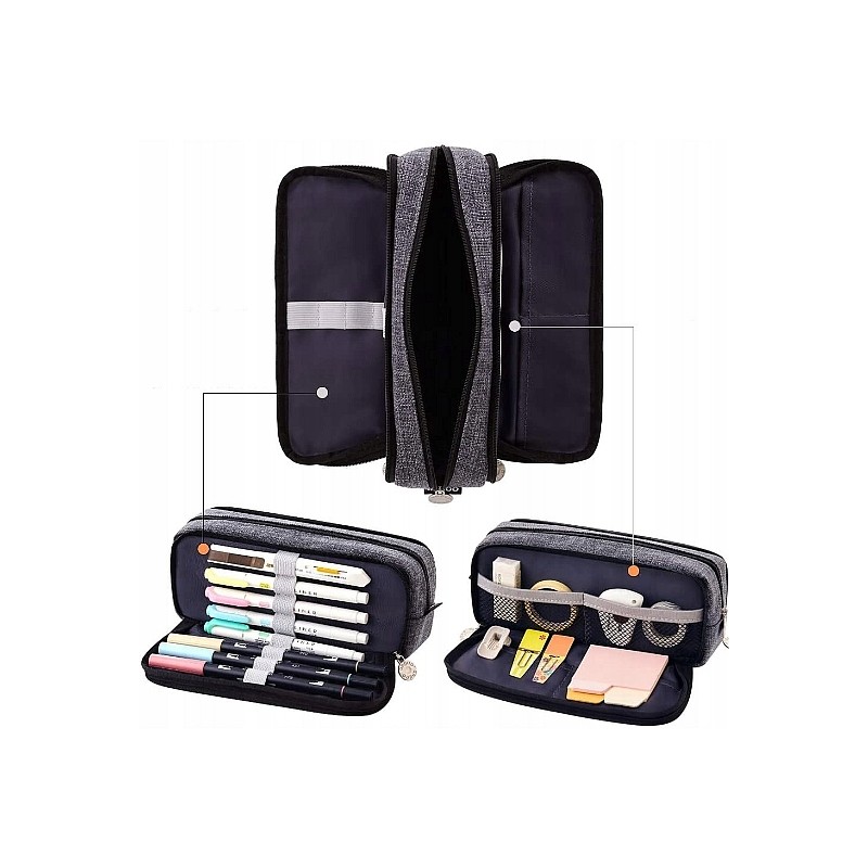 Большой карандаш многофункциональный три -хамбер Сделано из высококачественных материалов. Эргономичное использование пространства. Технические характеристики: Цвет: графит, черный Материал: 100% полиэстер Размеры: 23 x 8,5 x 6 см Вес: 100 г