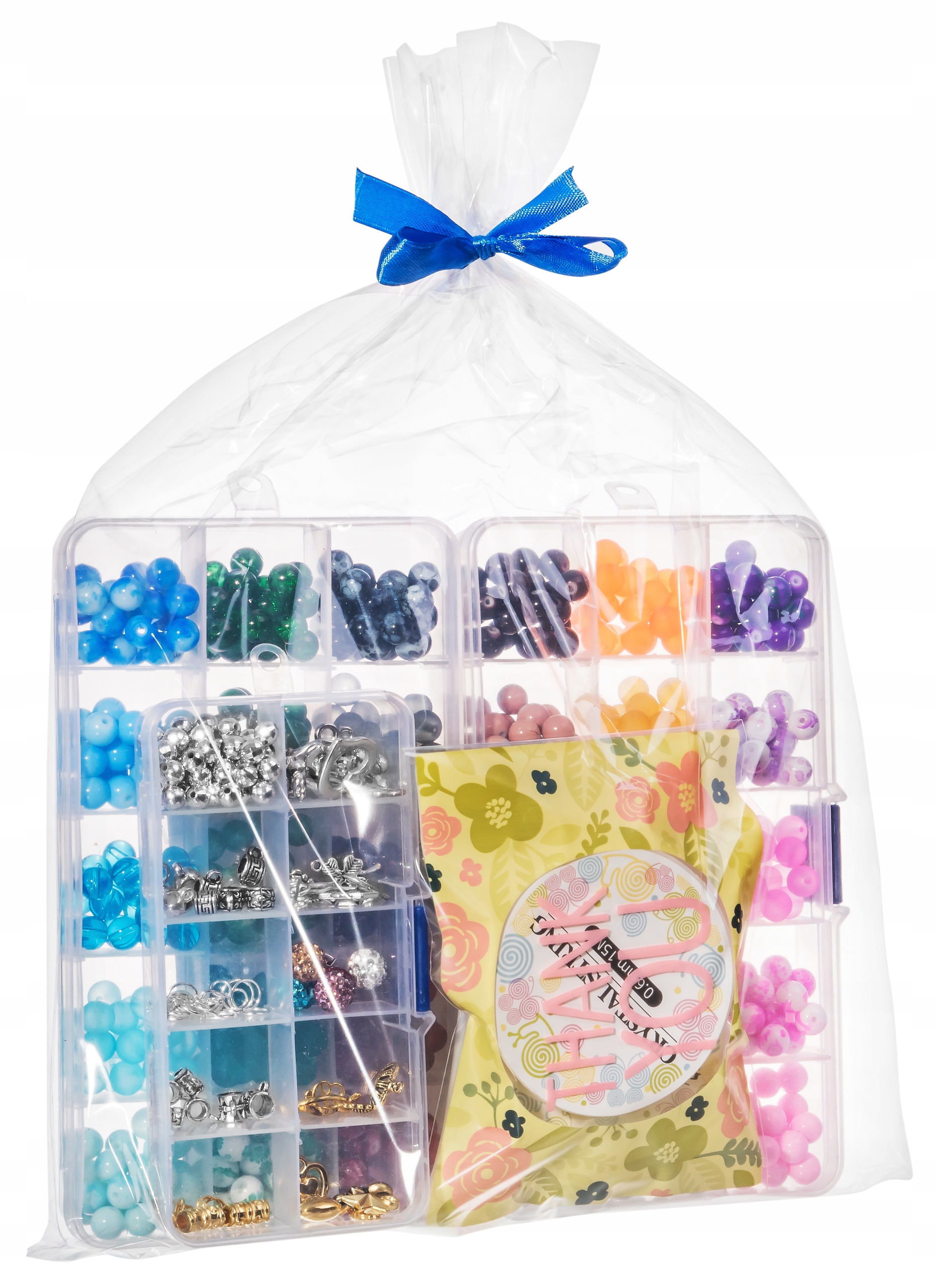 СТЕКЛЯННЫЕ БУСИНЫ УПАКОВАНЫ В ДВУХ БОЛЬШИХ ОРГАНАЙЗЕРАХ. РАЗМЕРАМИ: 17,5/10/2,5 см.