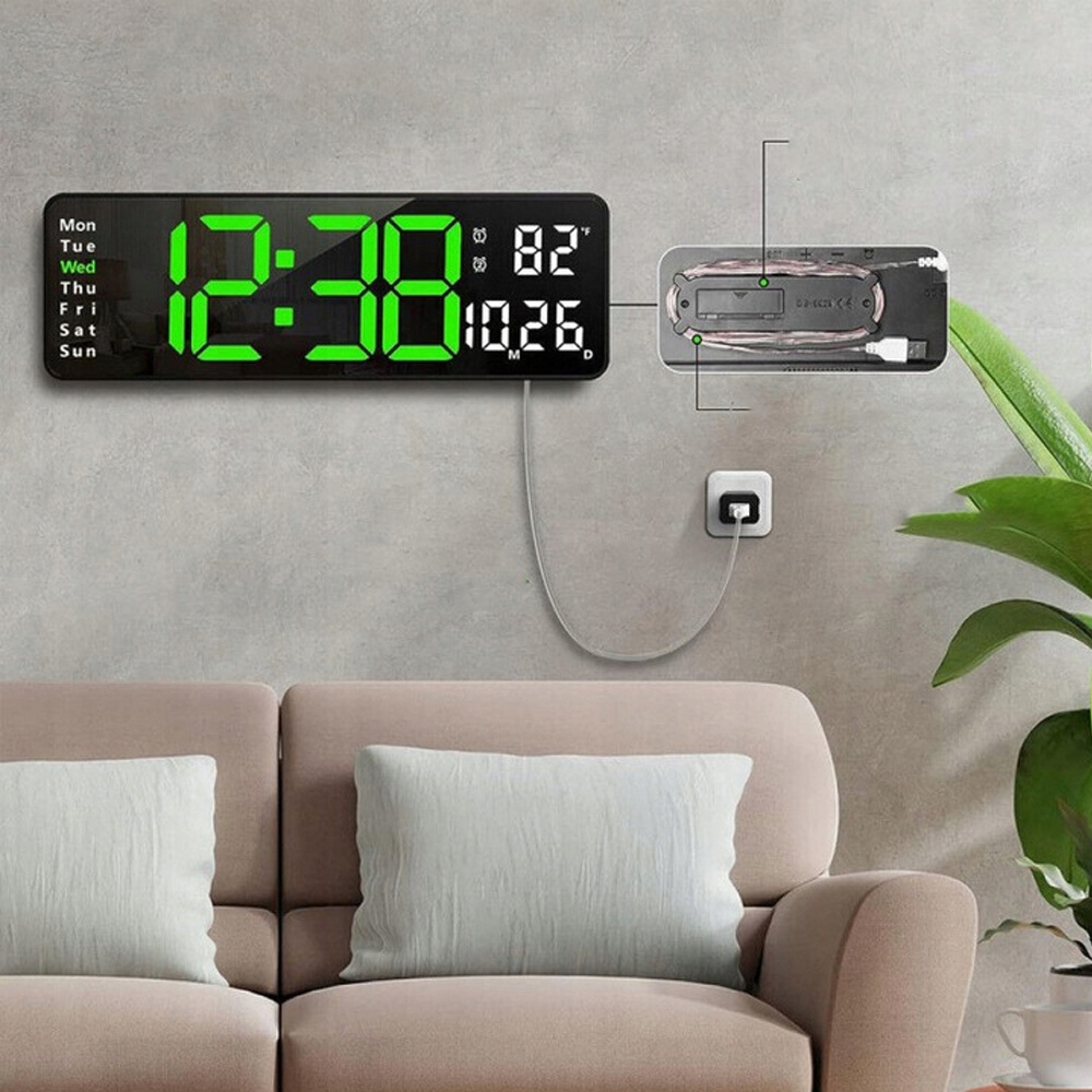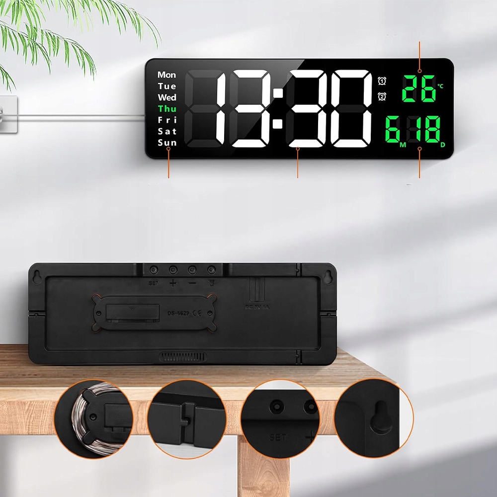 ⏰【 Функция памяти】 Настенные часы требуют источника питания (не прикрепленного) для работы и оборудованы кабелем питания USB. Цифровые светодиодные таблицы имеют встроенную функцию памяти, и их не нужно сбросить, даже если источник питания отключен (пожалуйста, принесите свои 2 батареи AAA).