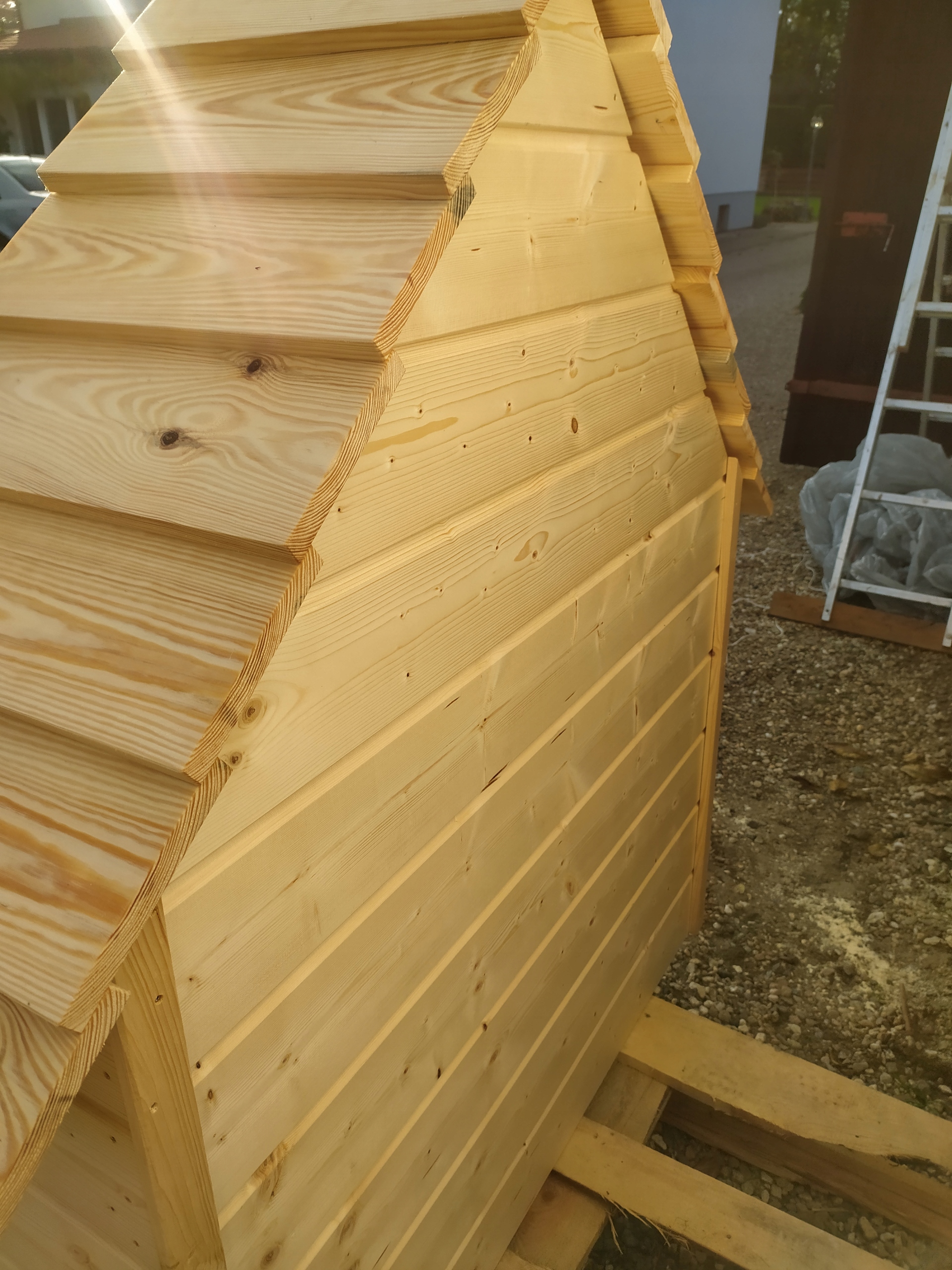 - выступает крыша в виде деревянной черепицы, защищающей дом от дождя