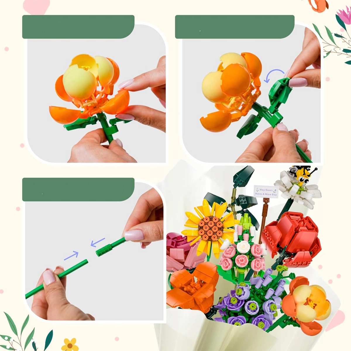 БОЛЬШОЙ БУКЕТ ЦВЕТОВ КОНСТРУКЦИИ 11804 ЦВЕТЫ ВАЗЫ БЛОКИ ДЛЯ ДЕТЕЙ