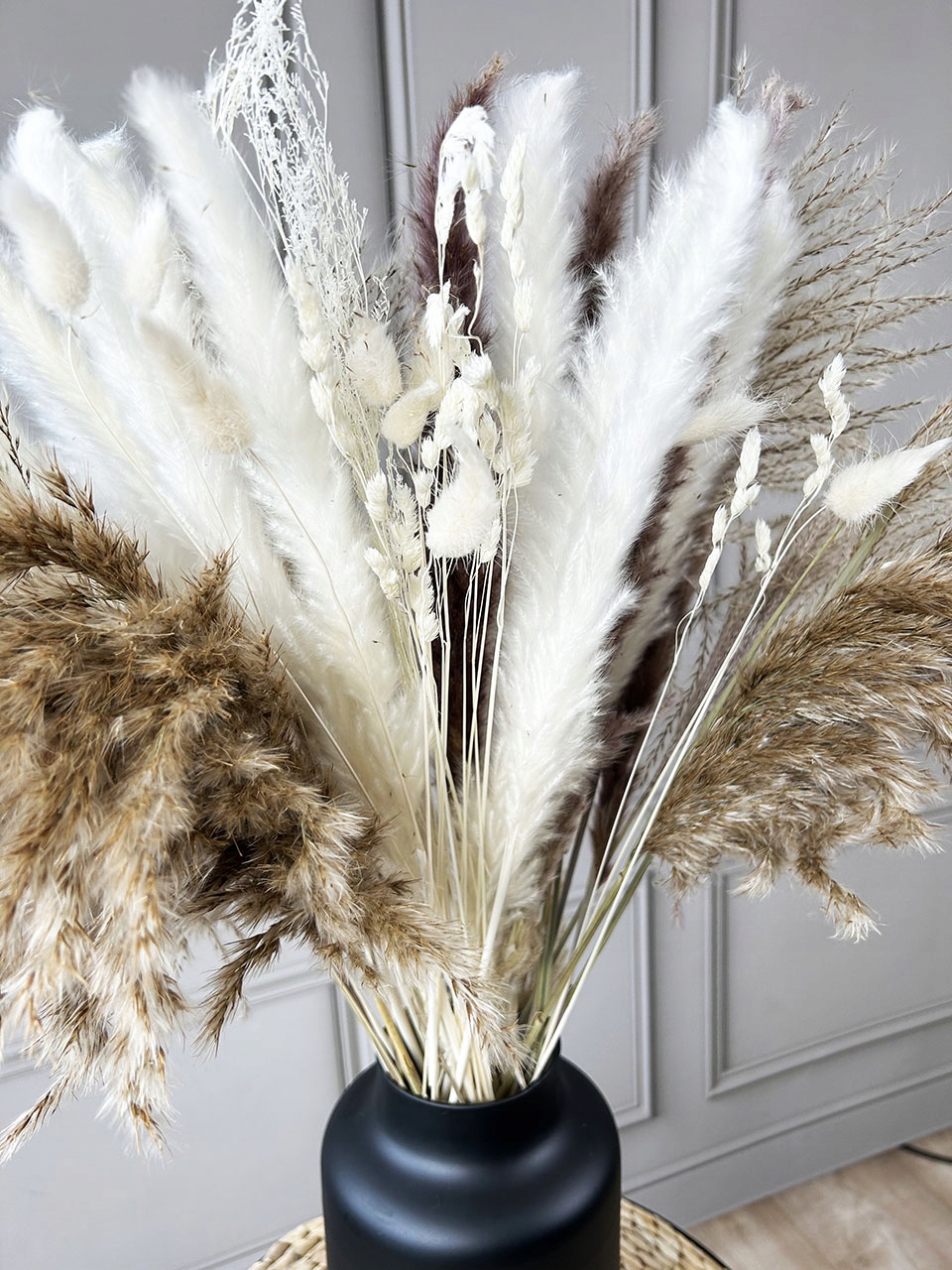 БОЛЬШОЙ БУКЕТ ИЗ ПАМПАСА, СУШЕННАЯ ПАМПАССКАЯ ТРАВА, ПОДВЕСКА ДЛЯ ВАЗЫ В БОХО