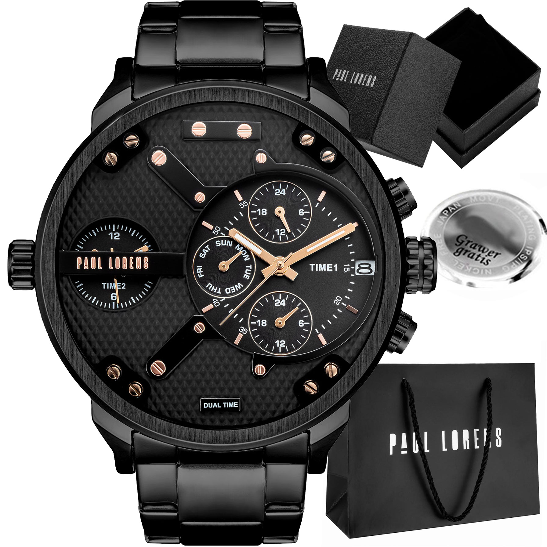 Великий чоловічий годинник Paul Lorens DIEZELI- сталевий - мультидатчик добовий час