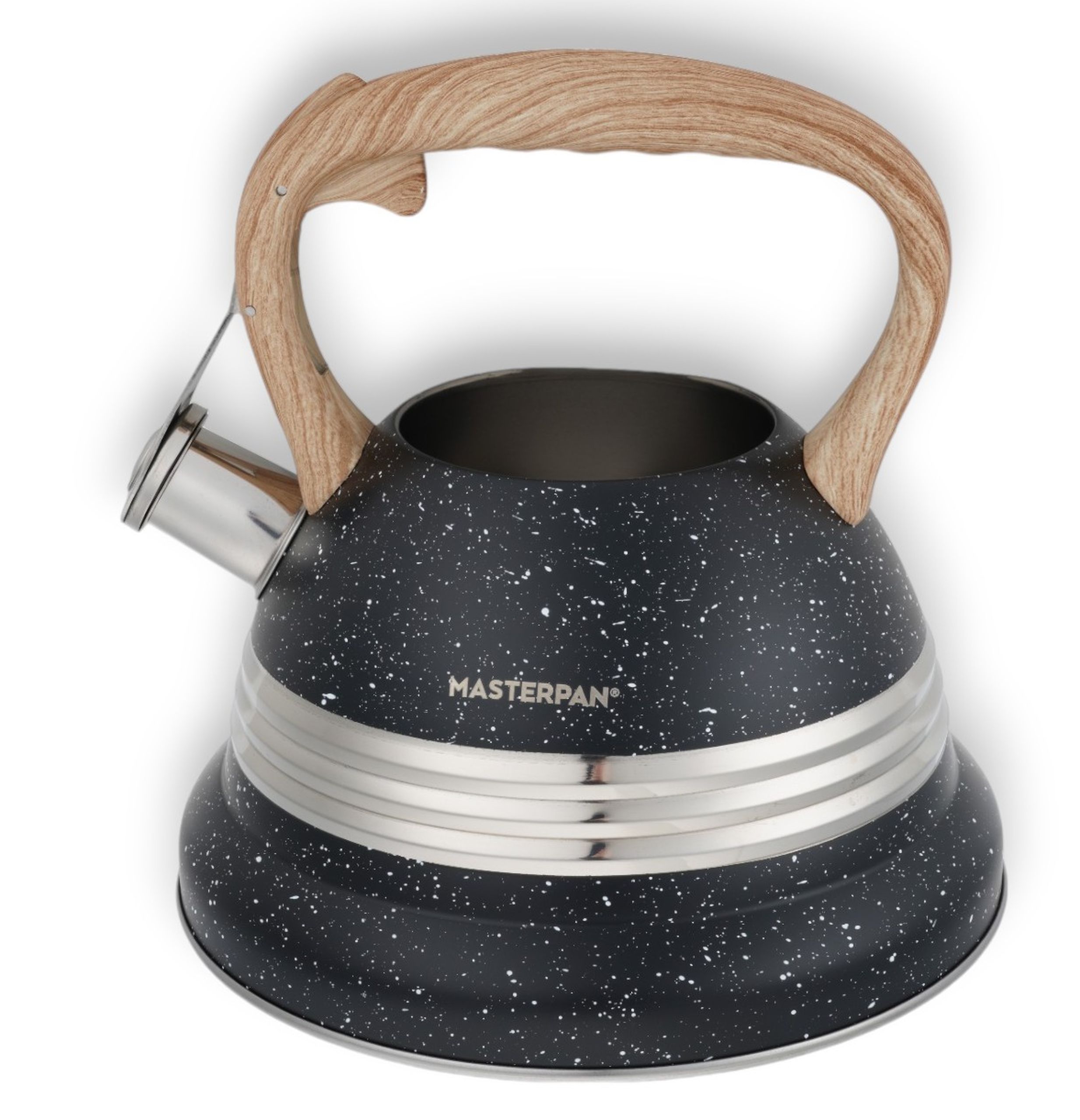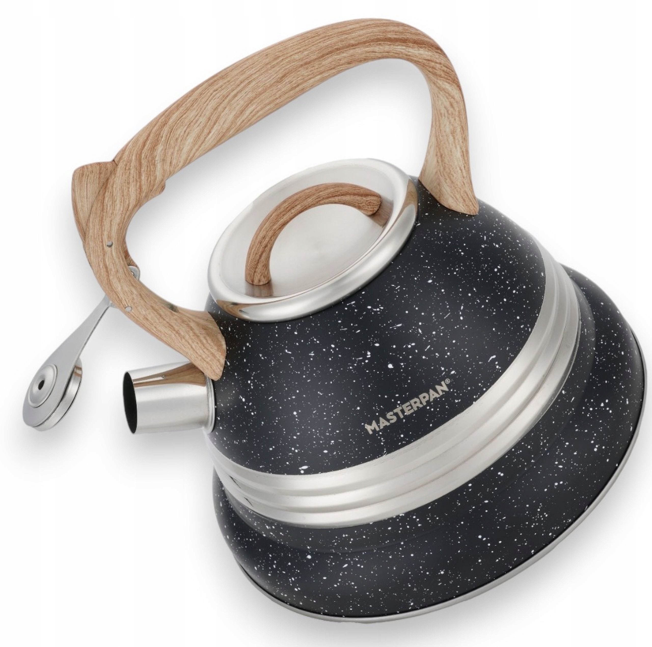 Черная стальная 3-литровая чайник с мраморной отделкой и ручкой, имитирующей древесину h2>