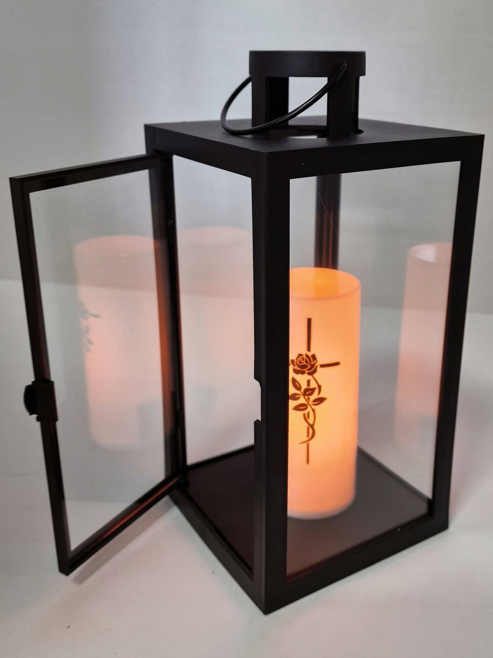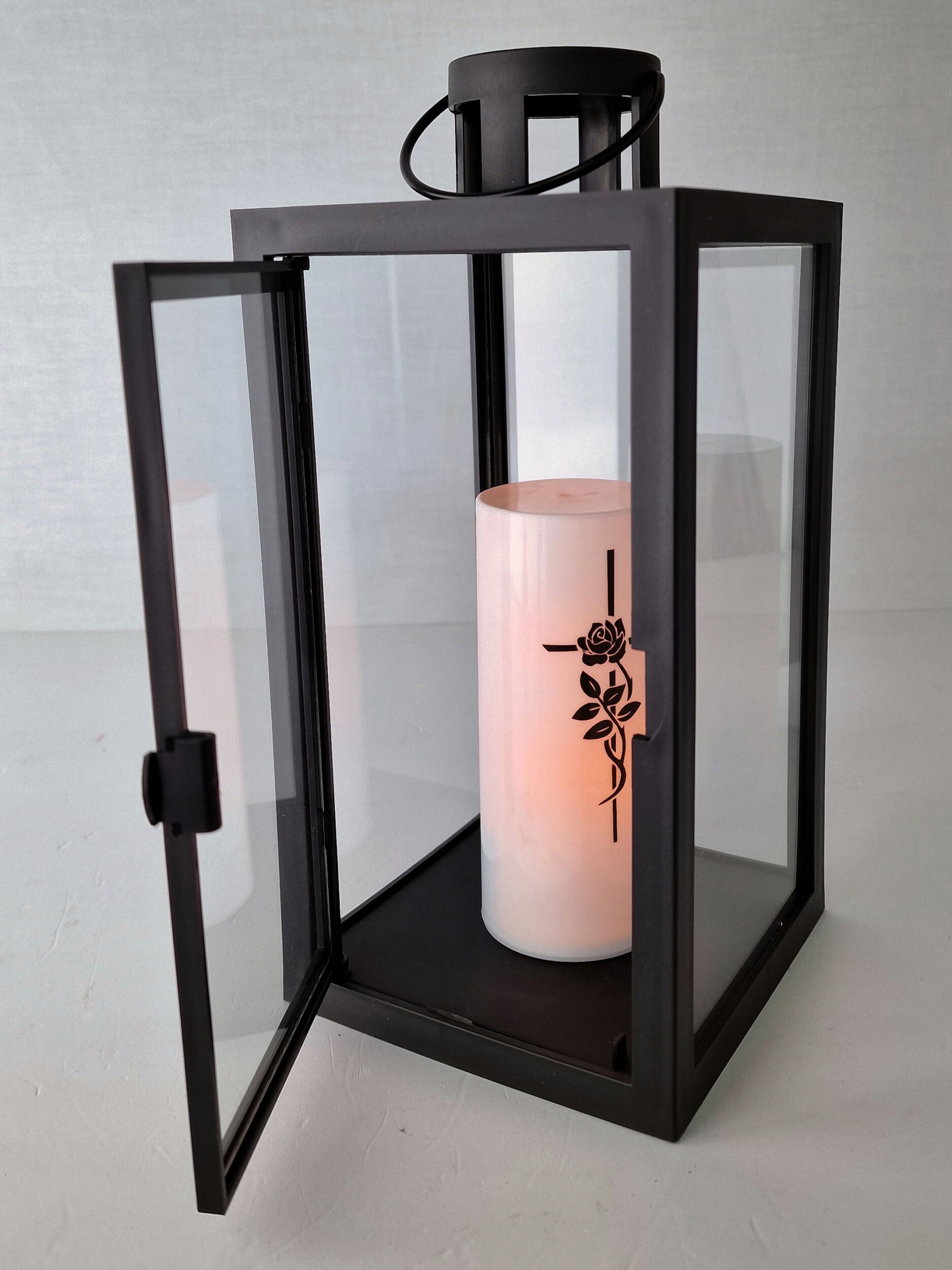 Великий декоративний ліхтар з дверцятами для світлодіодної свічки 32 см чорний