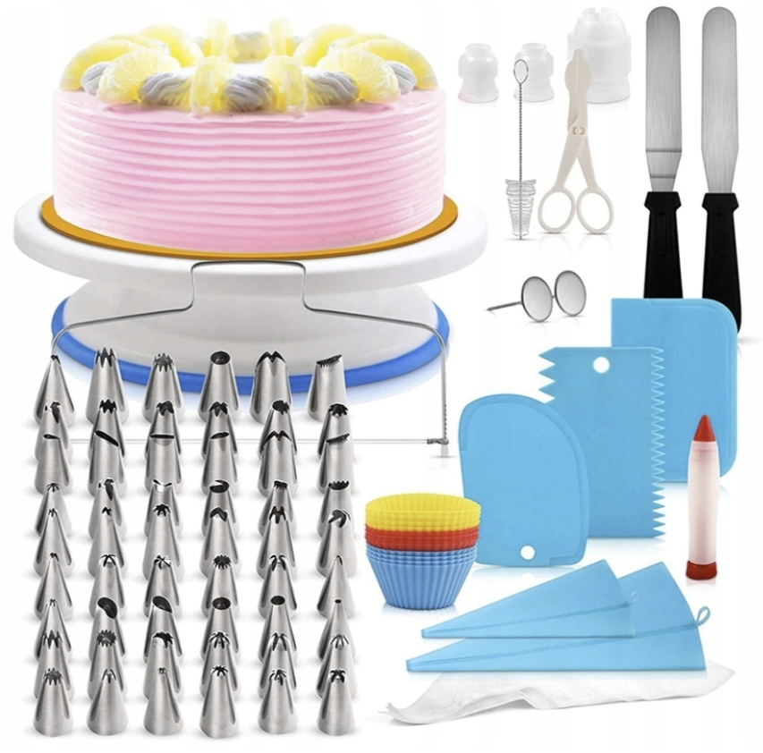 Очень большой и обширный набор для украшения любимых тортов, бисквитов, кексов, кексов и т. д. Профессиональный набор, который подойдет как начинающим кондитерам при приготовлении домашней выпечки на дни рождения и именины., или праздники, а также для старых поваров. Изготовлен из высококачественного пластика, силикона и нержавеющей стали.