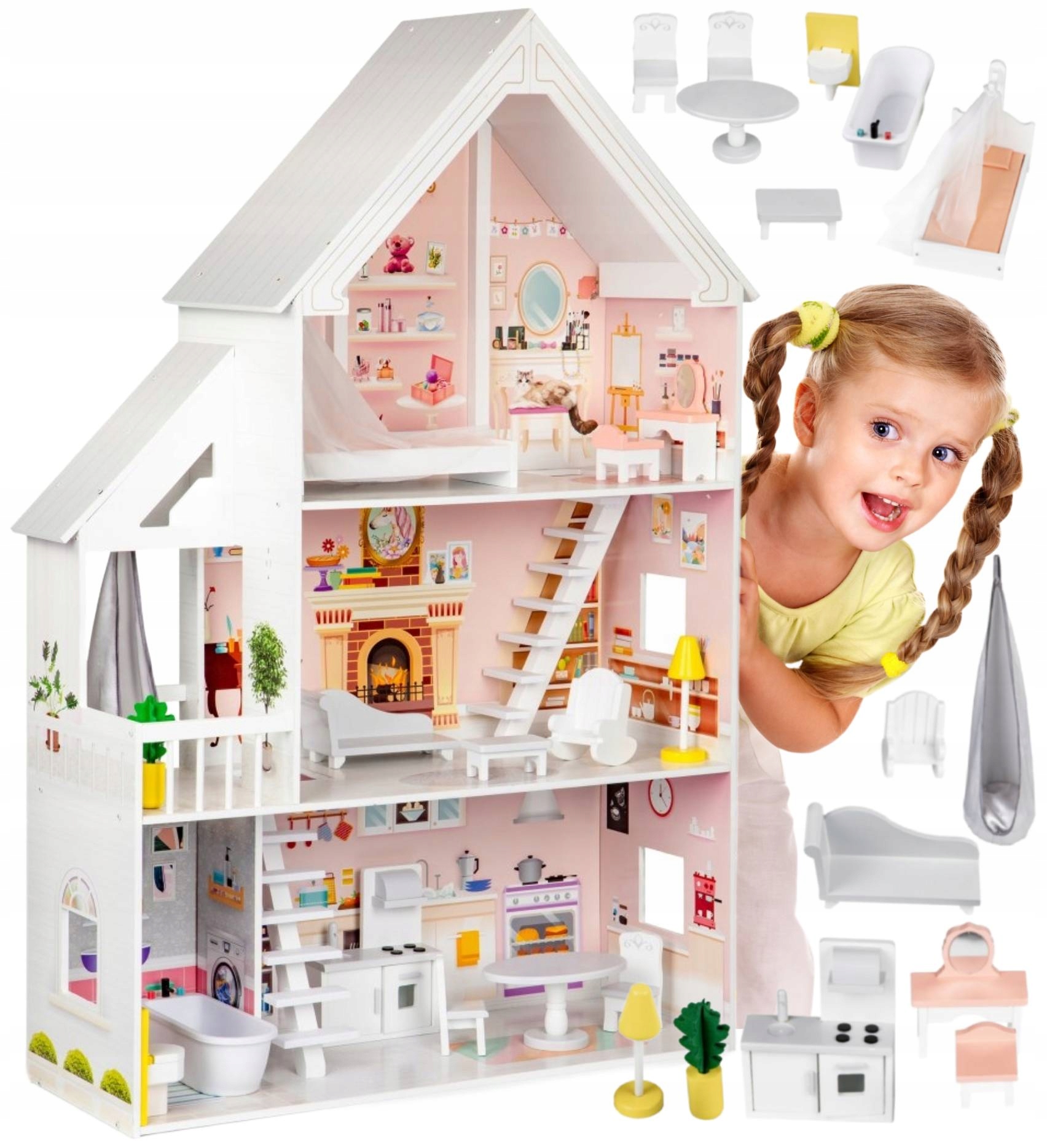 ДЕРЕВЯННЫЙ КУКОЛЬНЫЙ ДОМ XXL ПОРОШКОВЫЙ Особняк