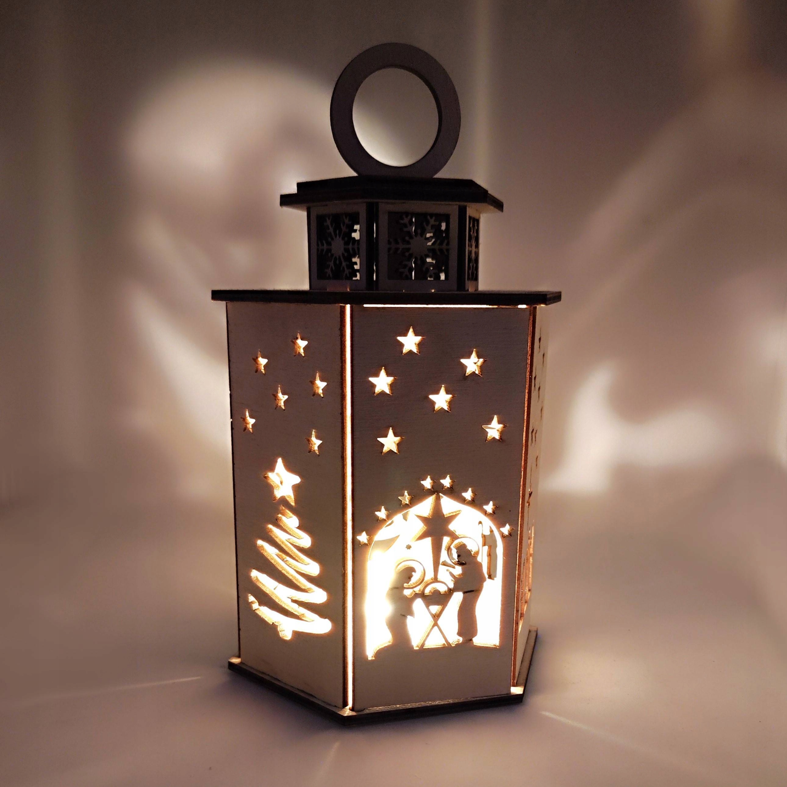 Деревянный. Структура, вырезанная лазером, делает фонарь не только эстетичным, но также прочным и прочным. Его уникальный дизайн с мотивами Адвента идеально сочетается с рождественскими украшениями, создавая неповторимую атмосферу.