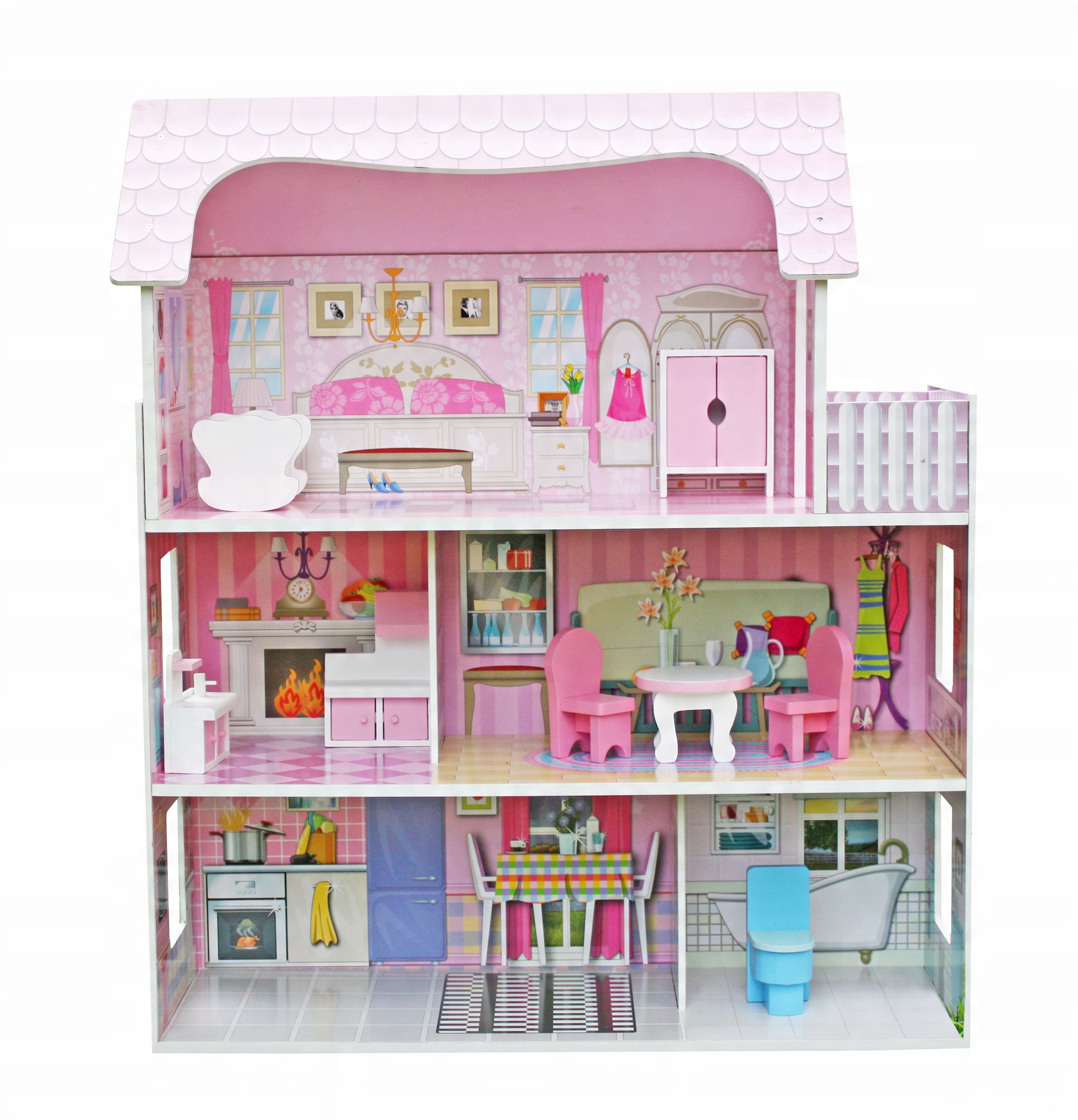 Красивый трехэтажный деревянный кукольный домик с мебелью и террасой был сделан с большим вниманием к каждой детали. Он имеет 5 больших и пространственных комнат и ходит на террасу. Деревянная мебель и аксессуары подвижны и могут перемещаться в любом месте в зависимости от воображения ребенка. Коттедж имеет три независимых уровня, в общей сложности 5 номеров + терраса, и каждая из них хранится в другом стиле (спальня, столовая, кухня, ванная комната, гостиная). Это, безусловно, будет наслаждаться вашим ребенком и обеспечить долгие часы веселья. Дом совершенно безопасен и стабилен. Он идеально подходит для любого интерьера.