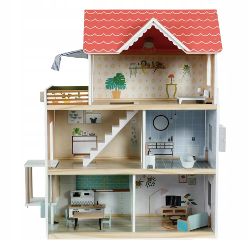 БОЛЬШОЙ ДЕРЕВЯННЫЙ КУКОЛЬНЫЙ ДОМ С ПОДАРОЧНЫМ ЛИФТОМ
