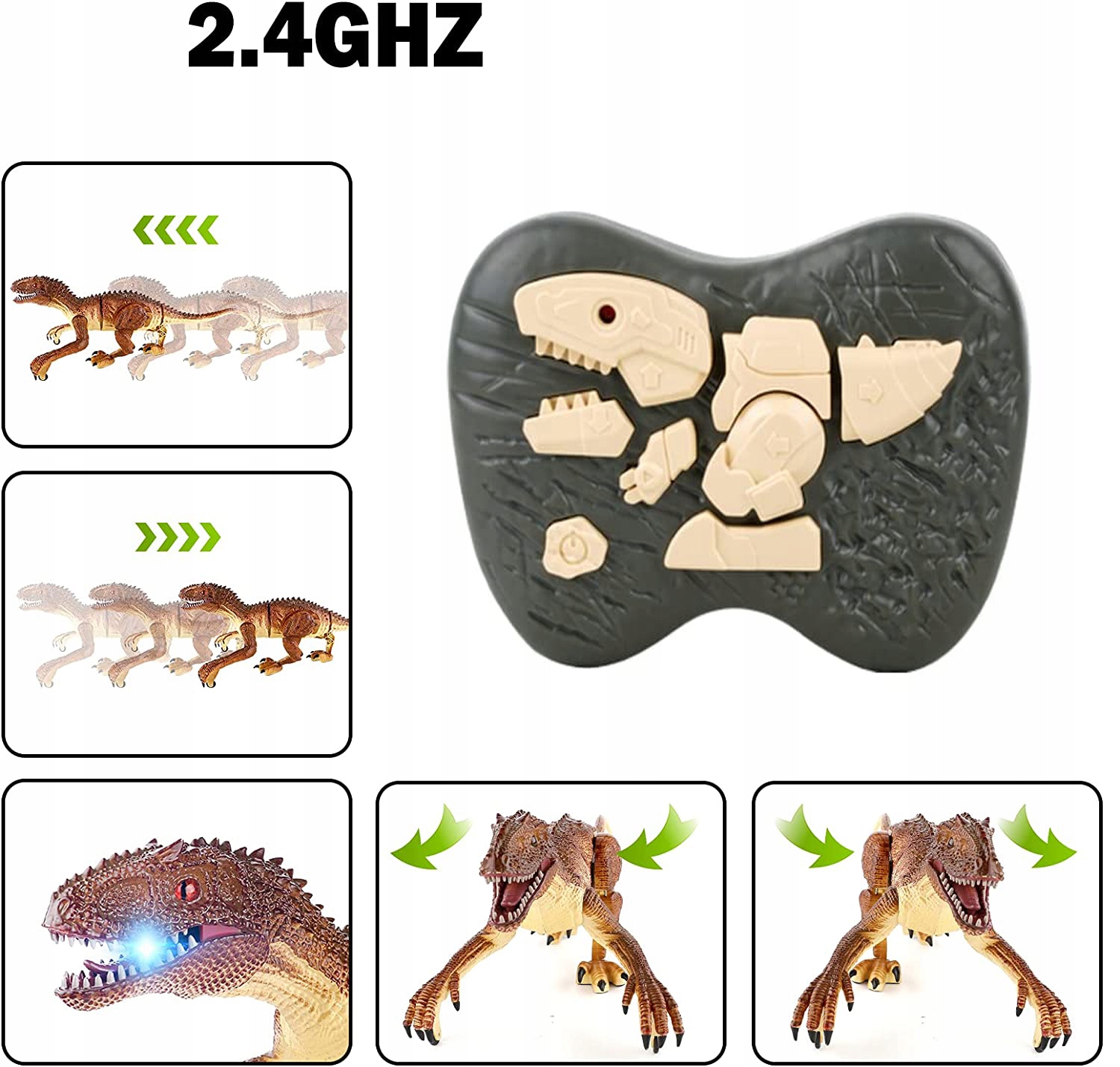 - Поведением и маршрутом игрушечного динозавра можно управлять с помощью пульта дистанционного управления.