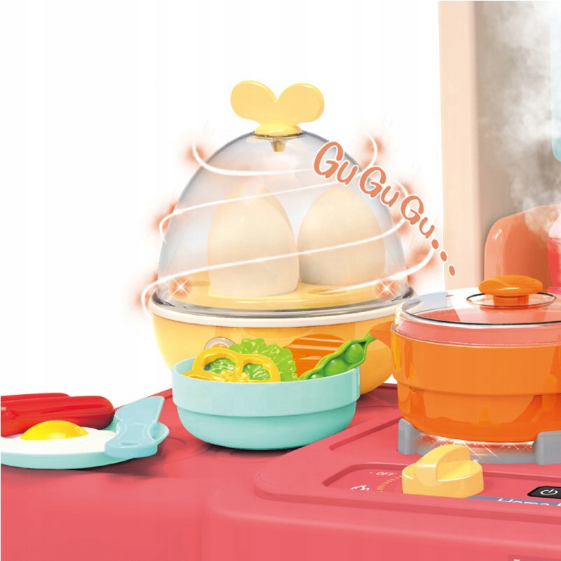 - Приготовление на пару . После включения первой ручки включается первая конфорка, загорается свет и из конфорки выходит пар, имитируя испаряющуюся воду. Все это сопровождается звуком кипящей воды (пар не горячий, совершенно безопасен)