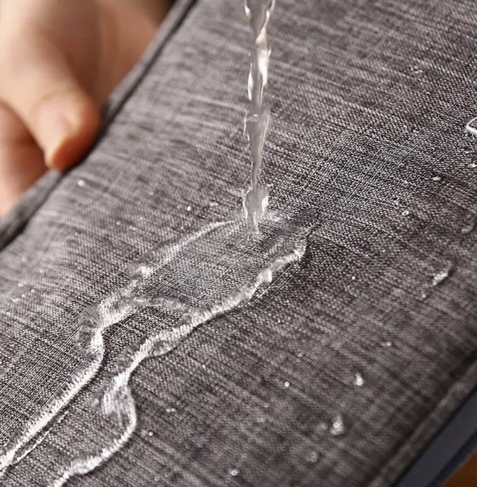 Материал, из которого изготовлен органайзер, водонепроницаем. Он защищает от случайного попадания воды, защищая кабели, зарядные устройства и другие мелкие электронные устройства. Кроме того, благодаря использованию материалов, которые легко очищаются, поддерживать чистоту корпуса относительно просто и легко.