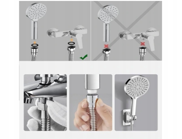 【Простота установки】 Вы получите душевой шланг и соответствующую прокладку, которую можно установить непосредственно без использования каких-либо других инструментов.