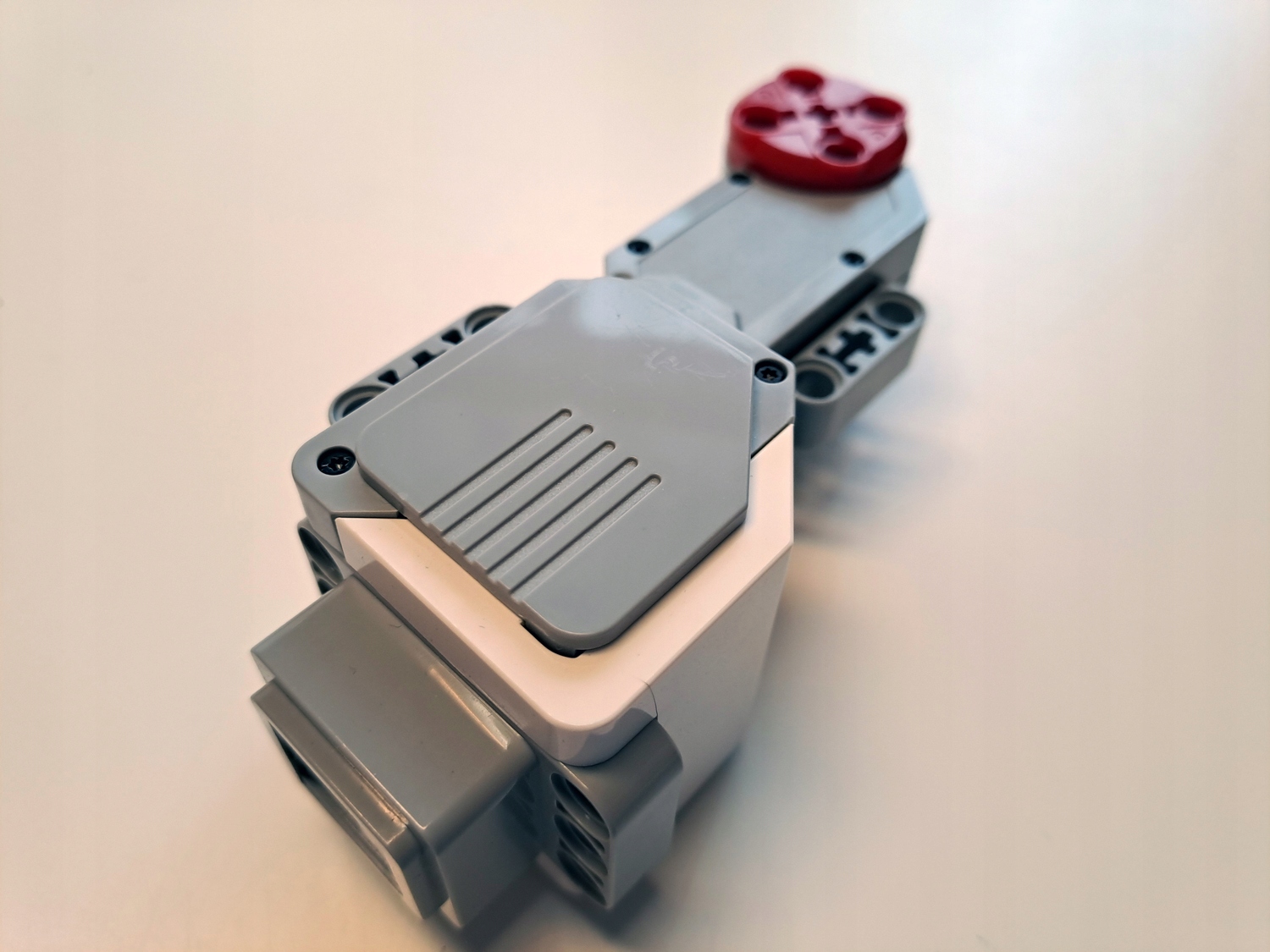 На двигателе имеются царапины, возникшие в результате движения двигателя между кирпичами в наборе Lego Mindstorms 45544.