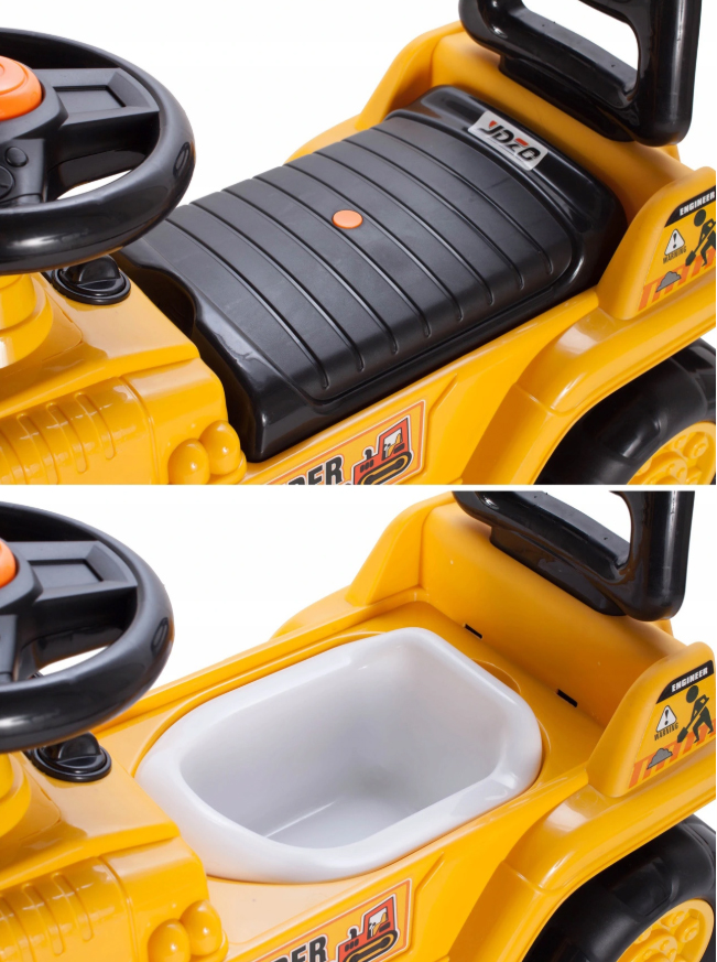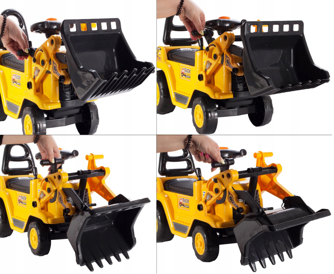 Машина для детей от 2 лет, позволяющая совершенствовать навыки вождения строительной техники и тренировать мышцы, развлекаясь. Бульдозер можно использовать как ездовой – ребенок управляет транспортным средством, толкаясь ногами, а также может использовать ковш бульдозера, чтобы поднимать предметы или зачерпывать песок. Катание тренирует координацию движений.