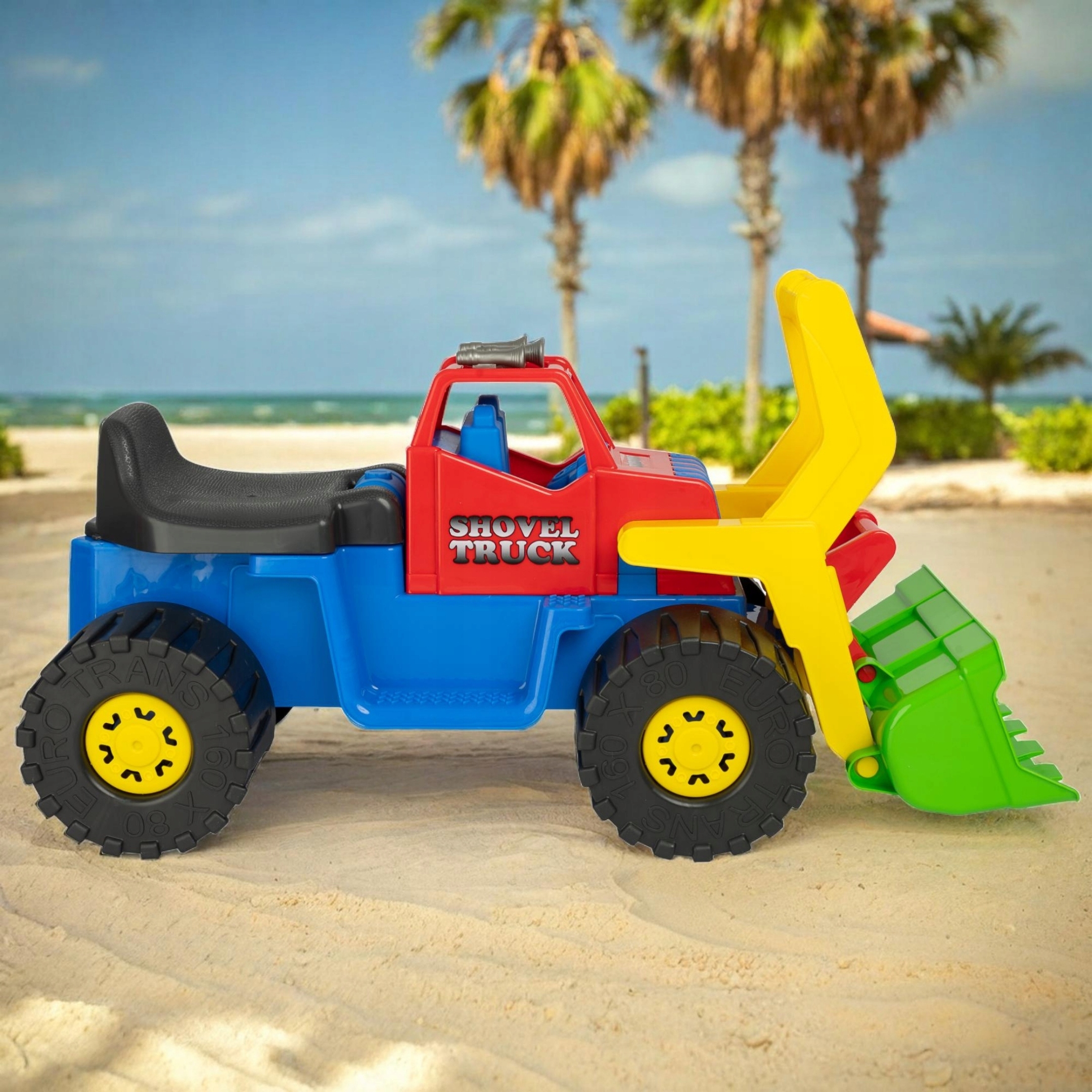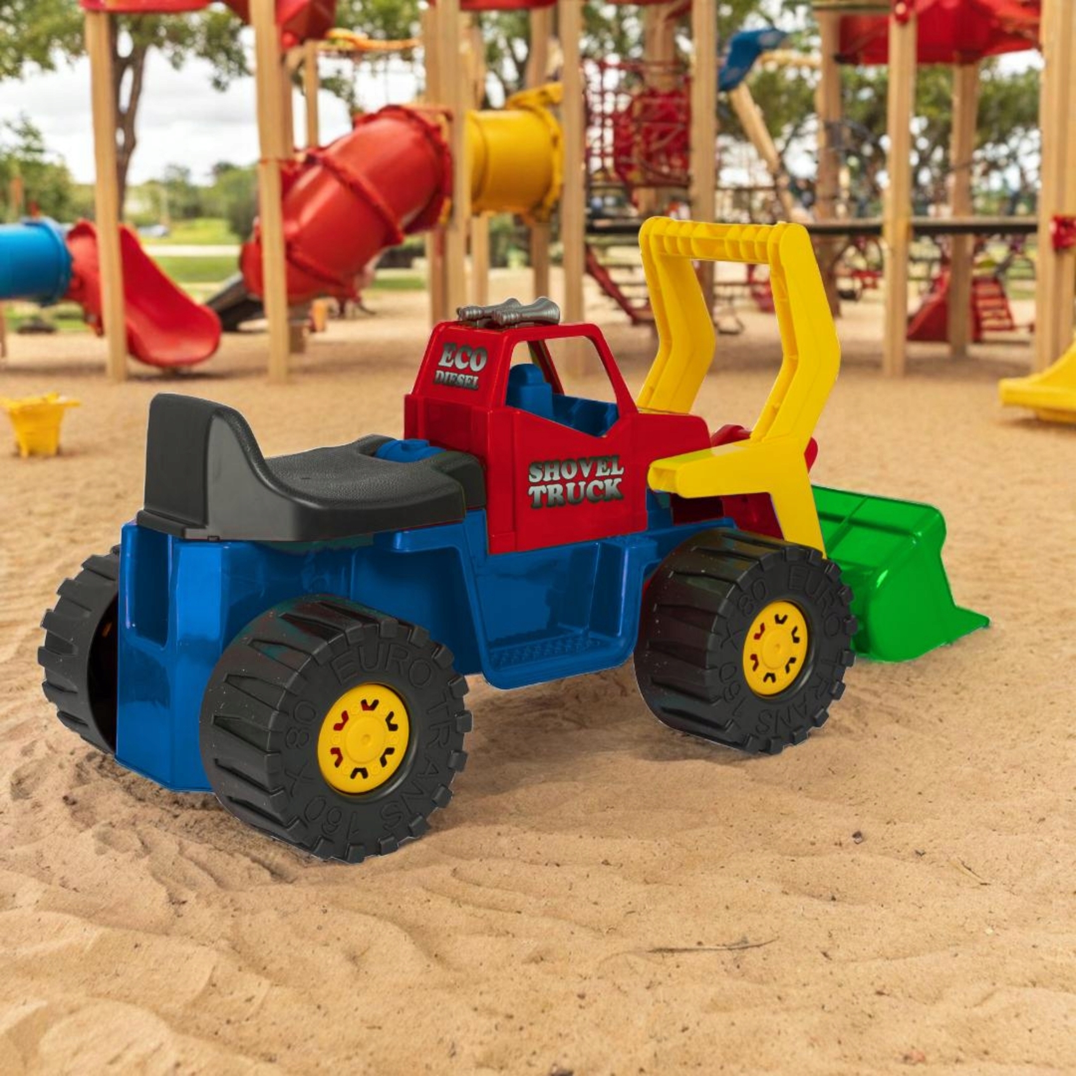 Благодаря большим, твердым колесам и подвижным лопастям плеч, дети могут часами играть в песочнице или в саду. Автомобиль впечатляет с высоким качеством и яркими цветами - синим, красным, желтым и зеленым.