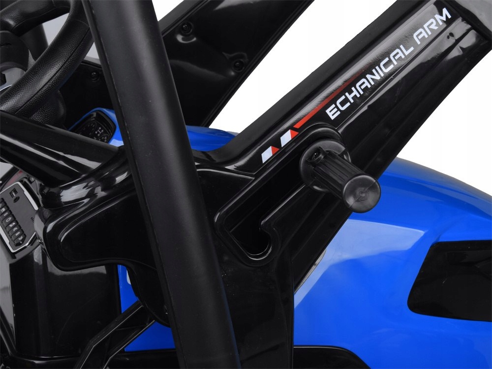 Крыша не имеет двери, благодаря тому, что выйти и выход из автомобиля не вызовет ребенка. Внутри салона мы найдем удобное, профилированное кресло с блок -ремнем. Чтобы привести трактор в движение, просто нажмите педали акселератора. Трактор имеет тормоз, работая после удаления ноги от ускорителя.