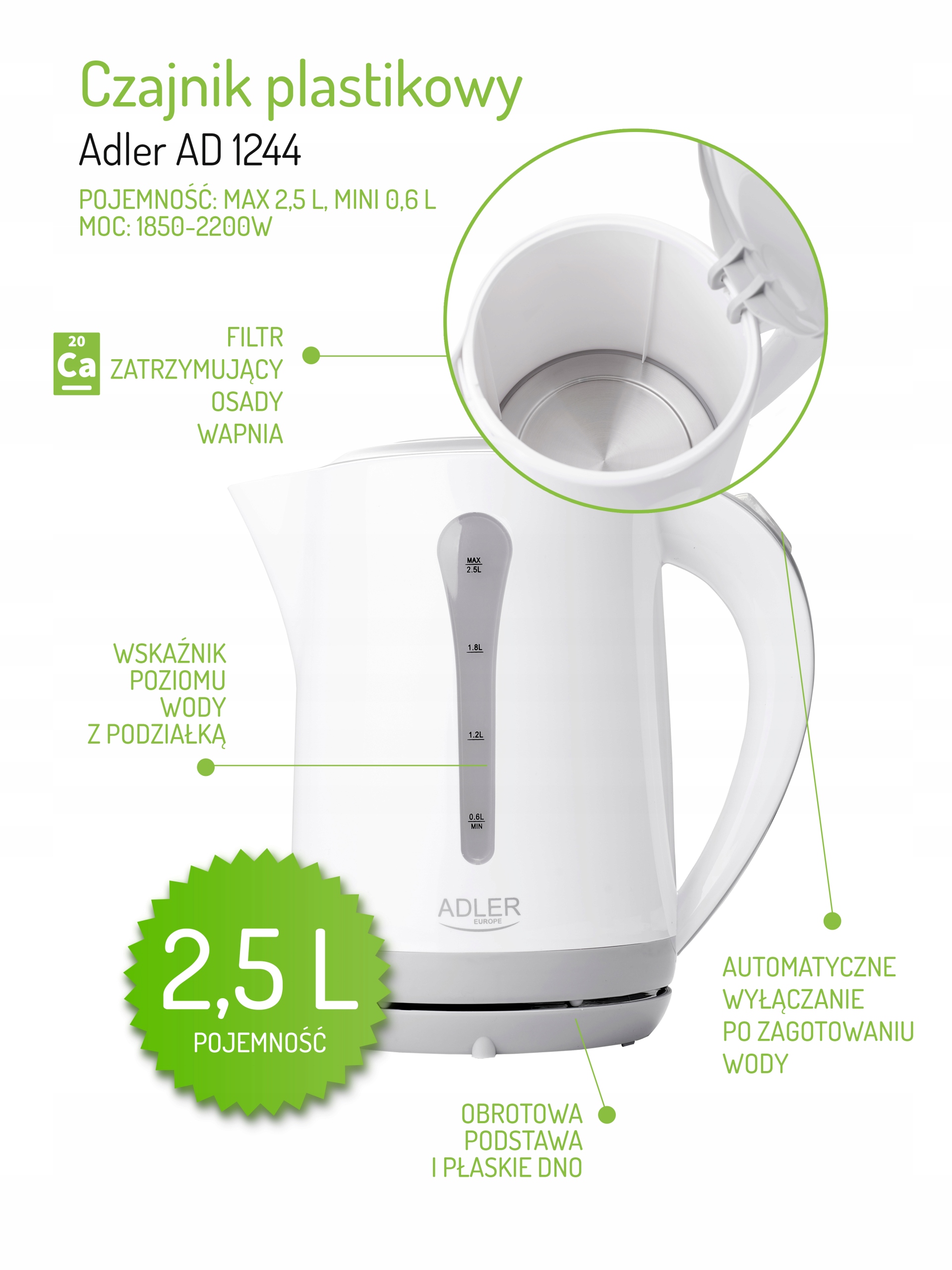 Оплачивая «Большой электрический чайник XXL 2,5л 2200Вт Adler» данный товар из каталога «Чайники и чайники», вы можете получить дополнительную скидку 4%, если произведете 100% предоплату. Размер скидки вы можете увидеть сразу при оформлении заказа на сайте. Внимание!!! Скидка распространяется только при заказе через сайт.