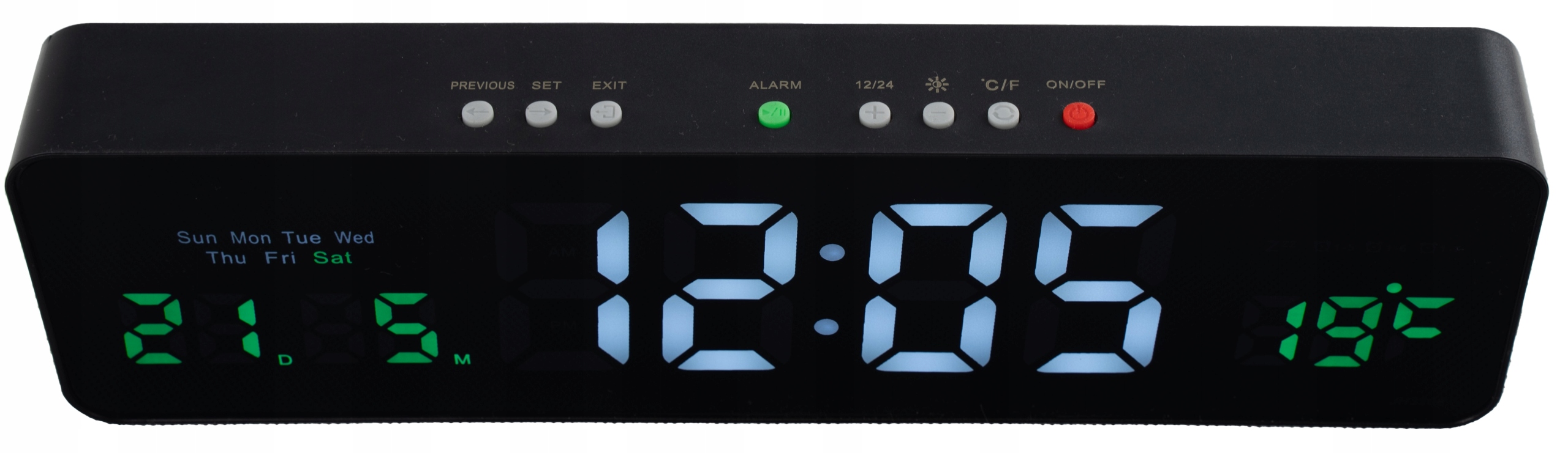 ▶ ️ Примеры чисел, забитые белыми и зелеными цветами, позволяют видеть час даже с большего расстояния и в темноте. Дополнительным преимуществом наших часов является отображение точной даты с днем недели, и встроенный датчик температуры всегда покажет вам, сколько градусов находится в комнате. Часть покрыта прозрачным пластиком. часы