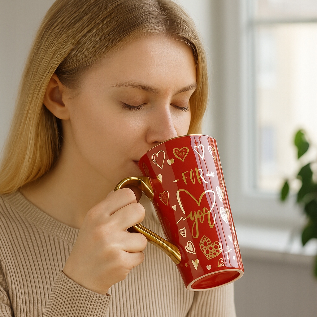 Стильная фарфоровая кружка с романтичным красно-золотым декором «Для тебя» — отличный подарок близкому человеку. Большая емкость делает его идеальным для утреннего кофе, чая или горячего шоколада. Упакован в элегантную коробку и готов к использованию.