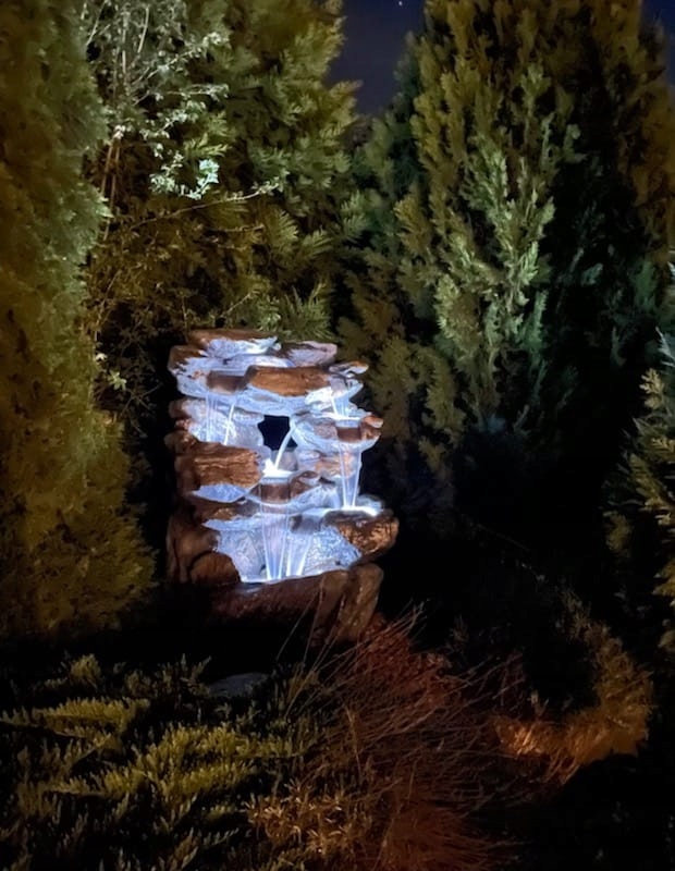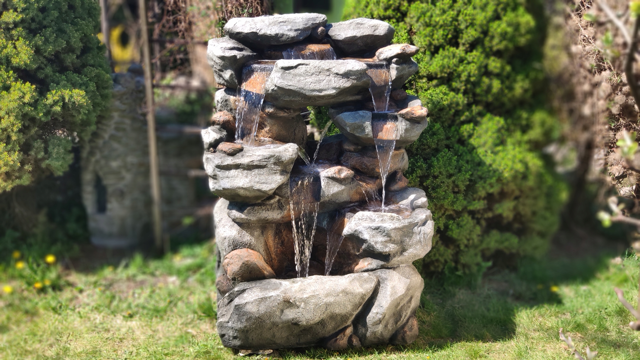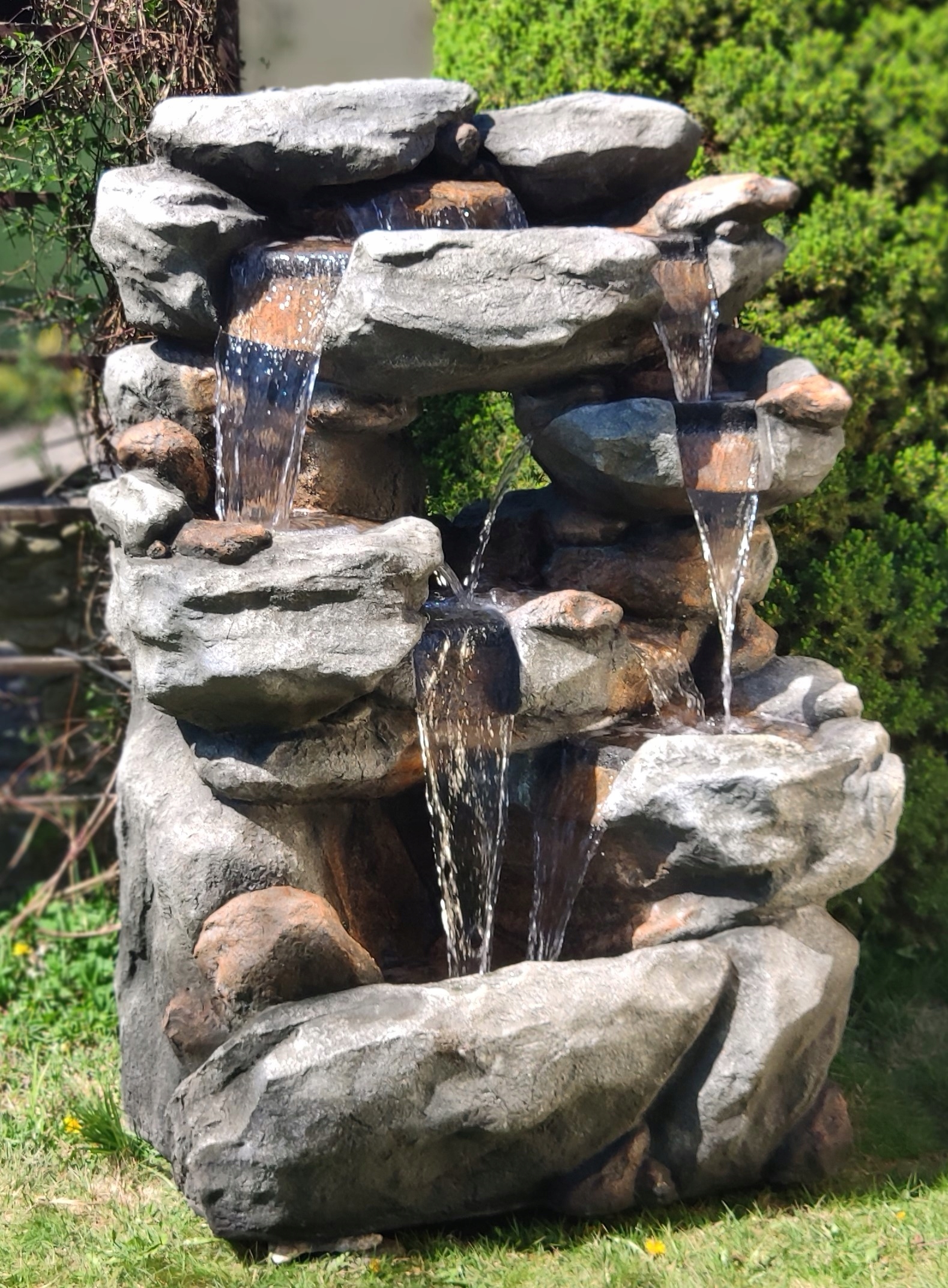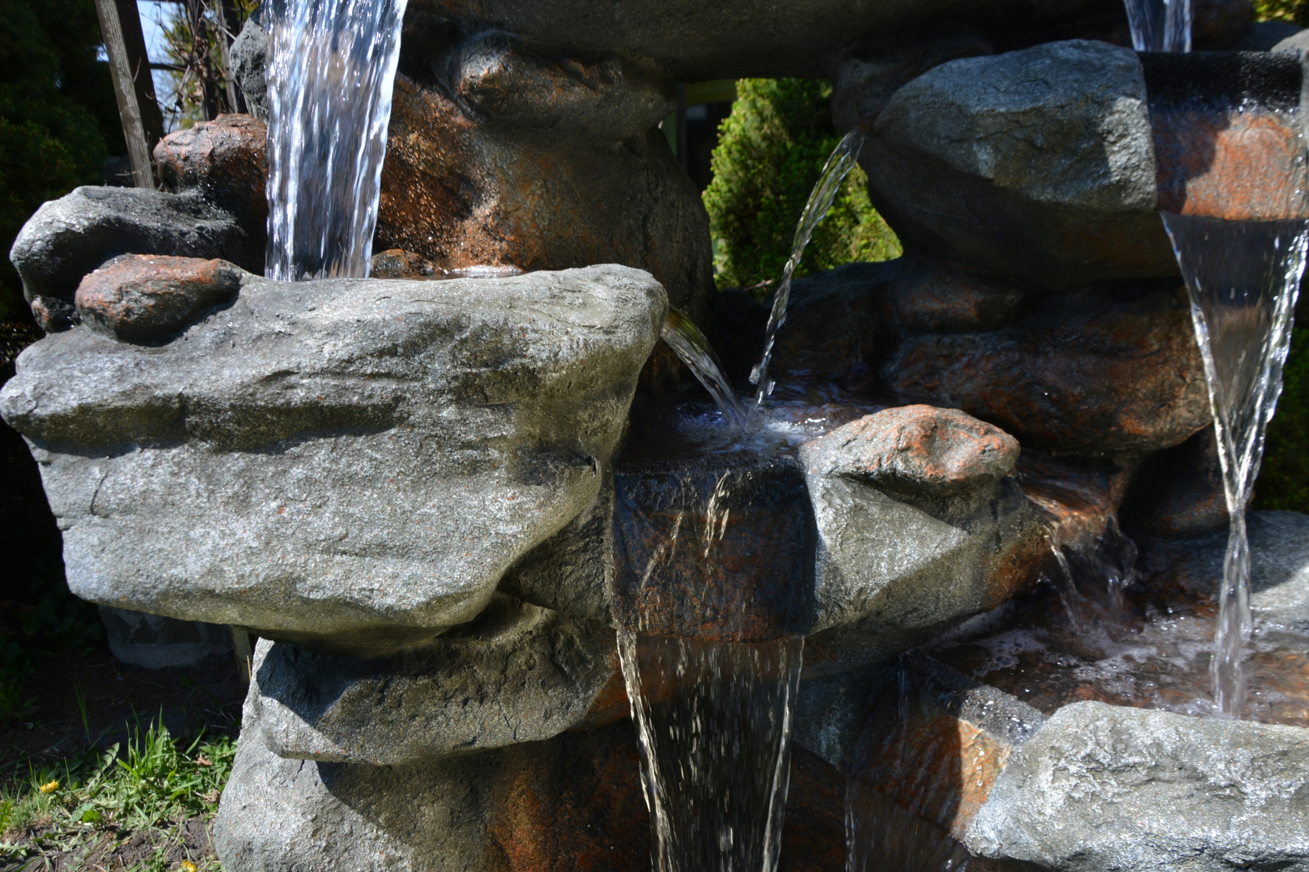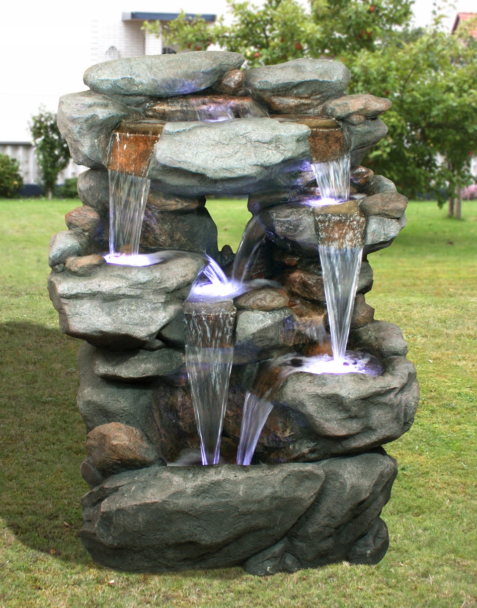 у нас есть много возможностей для украшения сада. В фонтане много капель воды, что создает эффект горы.