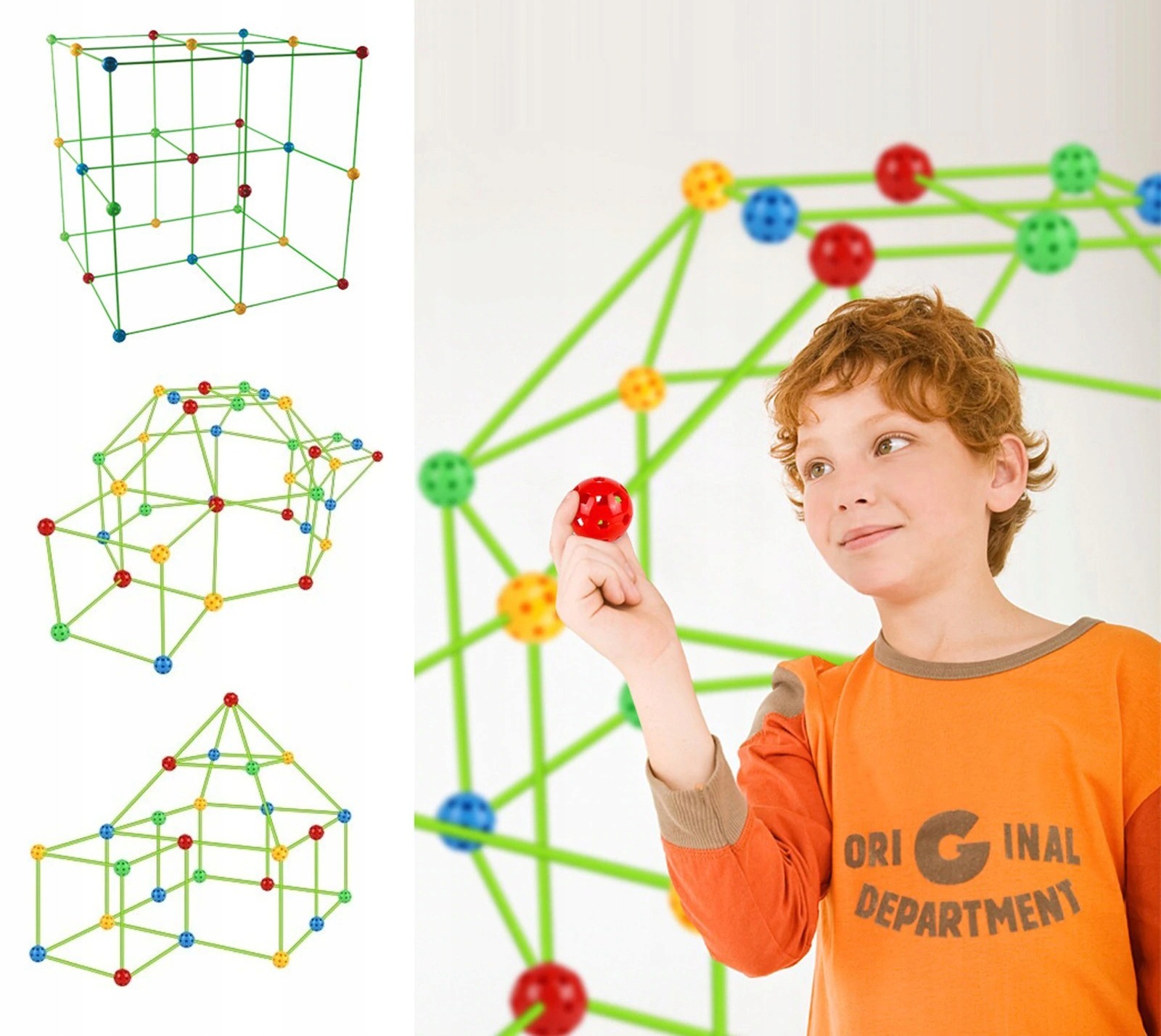 Версия с более длинными и толстыми палочками (38 см) и более крупными шариками (диаметр 4,5 см) позволяет строить гораздо более крупные и сложные конструкции, что дает детям больше свободы творчества.