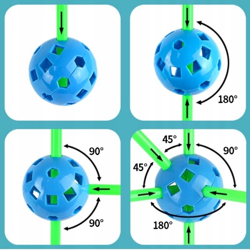 Ребенок может легко и интуитивно скручивать шарики на соломинки, создавая бесконечное количество различных типов проектов (СТОИТ ЗНАТЬ! Другие подобные модели, доступные на рынке, сложно собрать, поскольку для соединения шарика с соломинкой требуются специальные соединители)