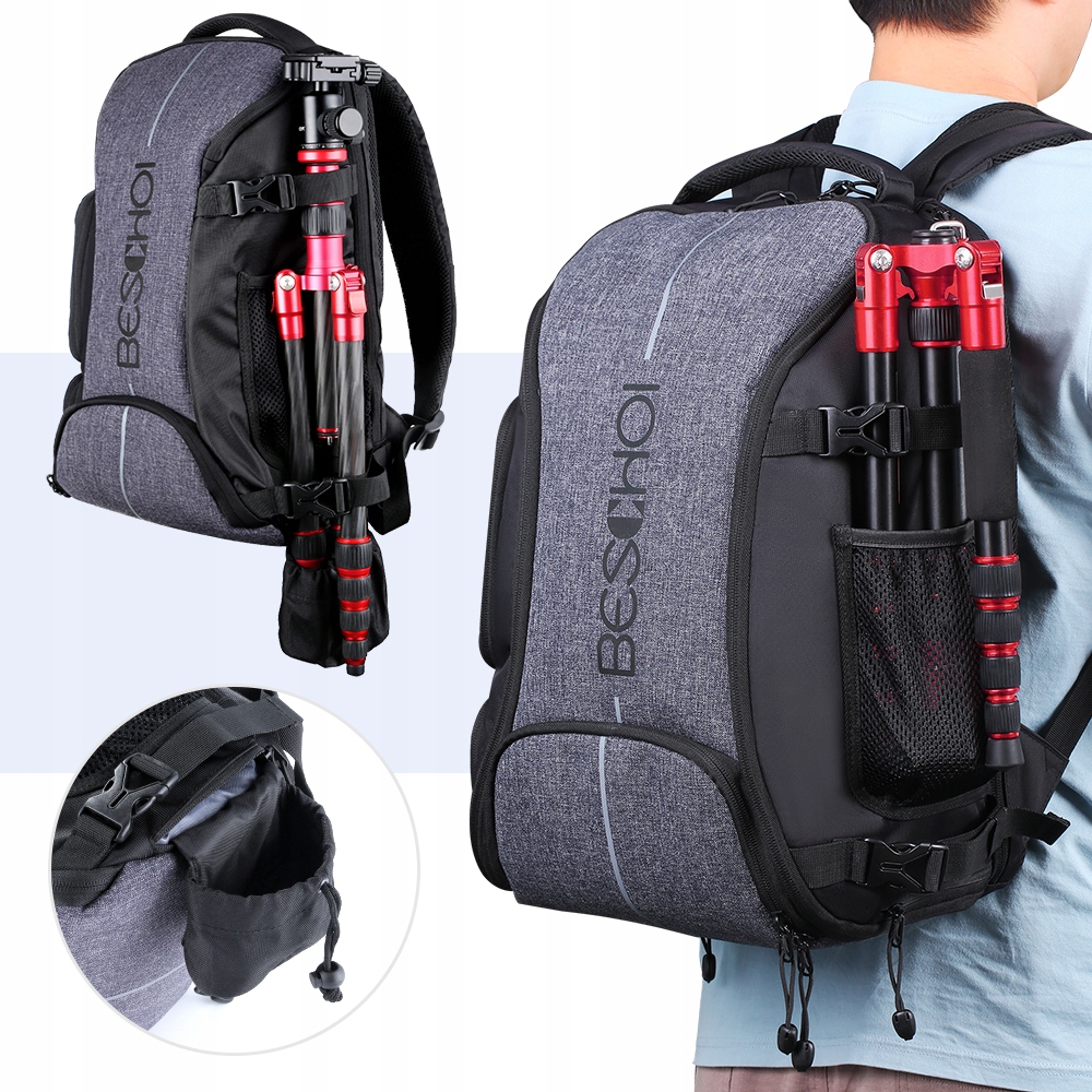 Вмещает 2 камеры + 4 дополнительных объектива + штатив + дрон + в рюкзаке Ноутбук 15,6 дюйма, личные вещи и другие аксессуары!