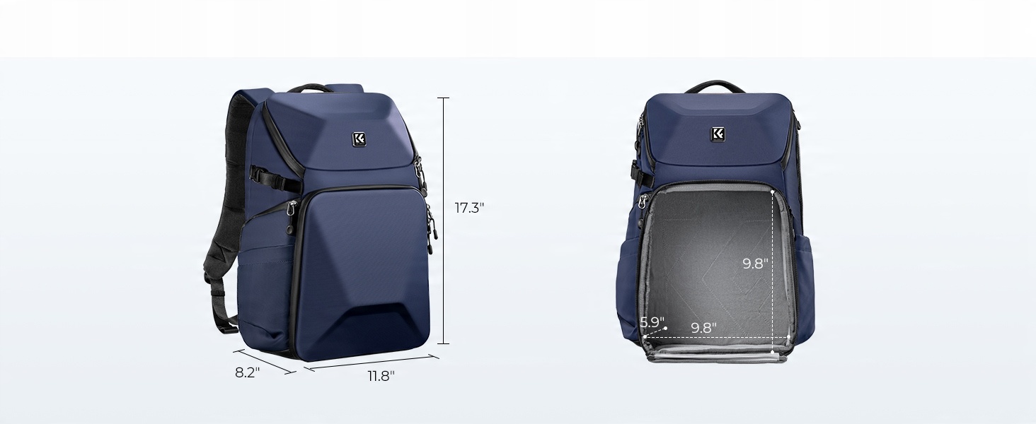 Функциональный и вместительный двухкамерный рюкзак K&F Concept Beta в синем цвете позволит удобно перевозить самое необходимое фотооборудование – фотоаппарат (зеркальный или беззеркальный фотоаппарат). , один или несколько объективов или дрон вместе с контроллером и аксессуарами. Прочные, жесткие внешние стенки и используемый внутри гладкий материал обеспечивают полную безопасность и эффективно защищают хрупкие элементы.