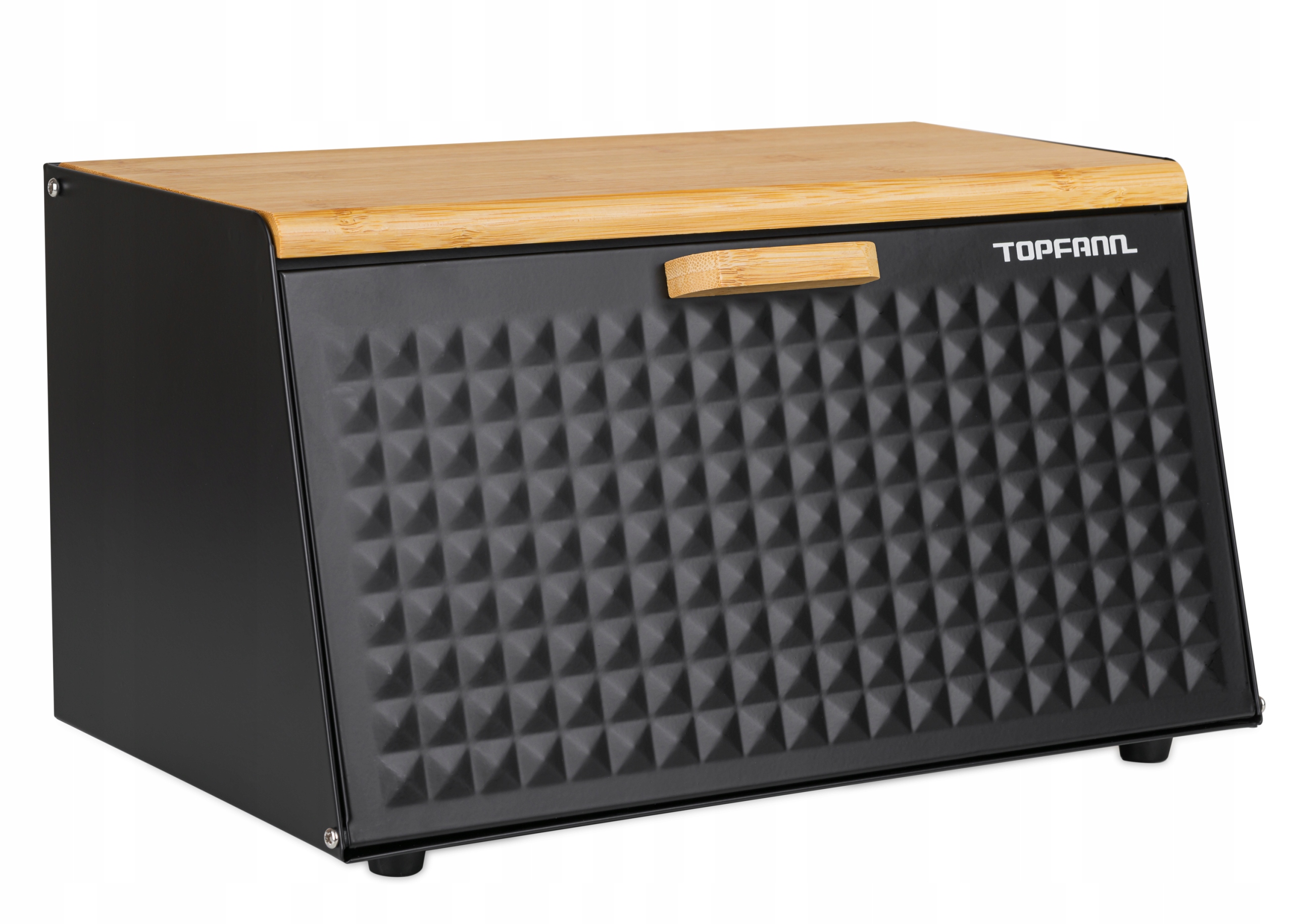 Хлебница изготовлена из стали с порошковым покрытием и бамбукового дерева. У контейнера две крышки — одна открывается вверх, другая вниз. Благодаря этому мы будем уверены, что хранящиеся у нас продукты будут оставаться свежими дольше. Кроме того, хлебница имеет 4 нескользящие ножки, которые эффективно предотвращают ее скольжение по поверхности столешницы.