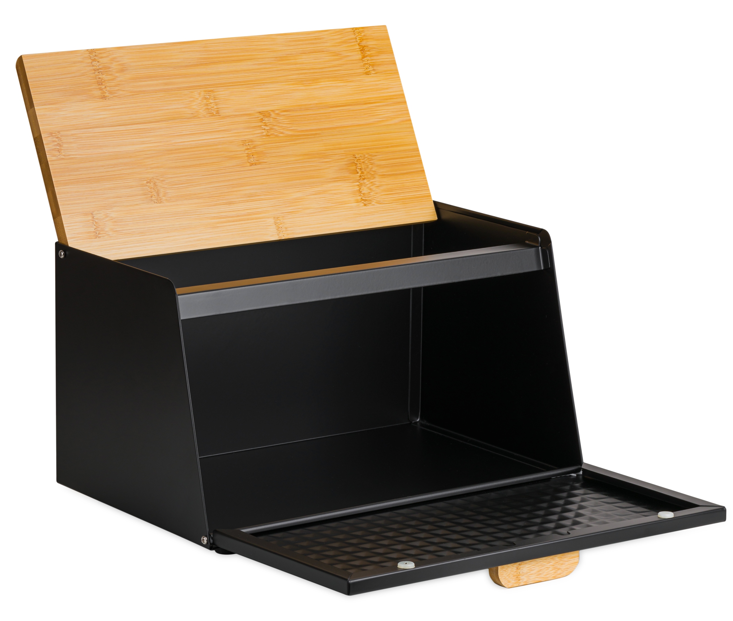 Чтобы положить хлеб внутрь, просто потяните за ручку спереди. стену илиподнимитебамбуковоепокрытие. Хлебницаочень вместительная и при этом легкая, поэтому переноска не составит проблем.
