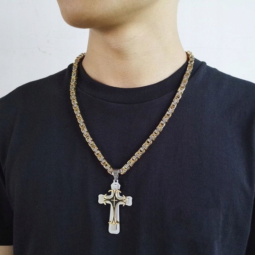 Мы предлагаем вам элегантный кулон, полностью изготовленный из высококачественной хирургической стали 316L, которую часто называют ювелирной, нержавеющей или благородной сталью. Изделие в форме двухслойного креста, выглядит очень оригинально. Сочетание серебра, золота и черного представляет собой необычное и впечатляющее цветовое сочетание, обусловленное прочным ионным покрытием метод анодирования. Блестящий кулон, состоящий из трех слоев. Кулон создан с величайшим вниманием к деталям и невероятной точностью, чтобы обеспечить максимальный комфорт его использования. Он непременно придется по вкусу даже требовательному получателю и станет отличным и удачным подарком на такие случаи, как: Святое Причастие, Миропомазание или в качестве подарка без повода.