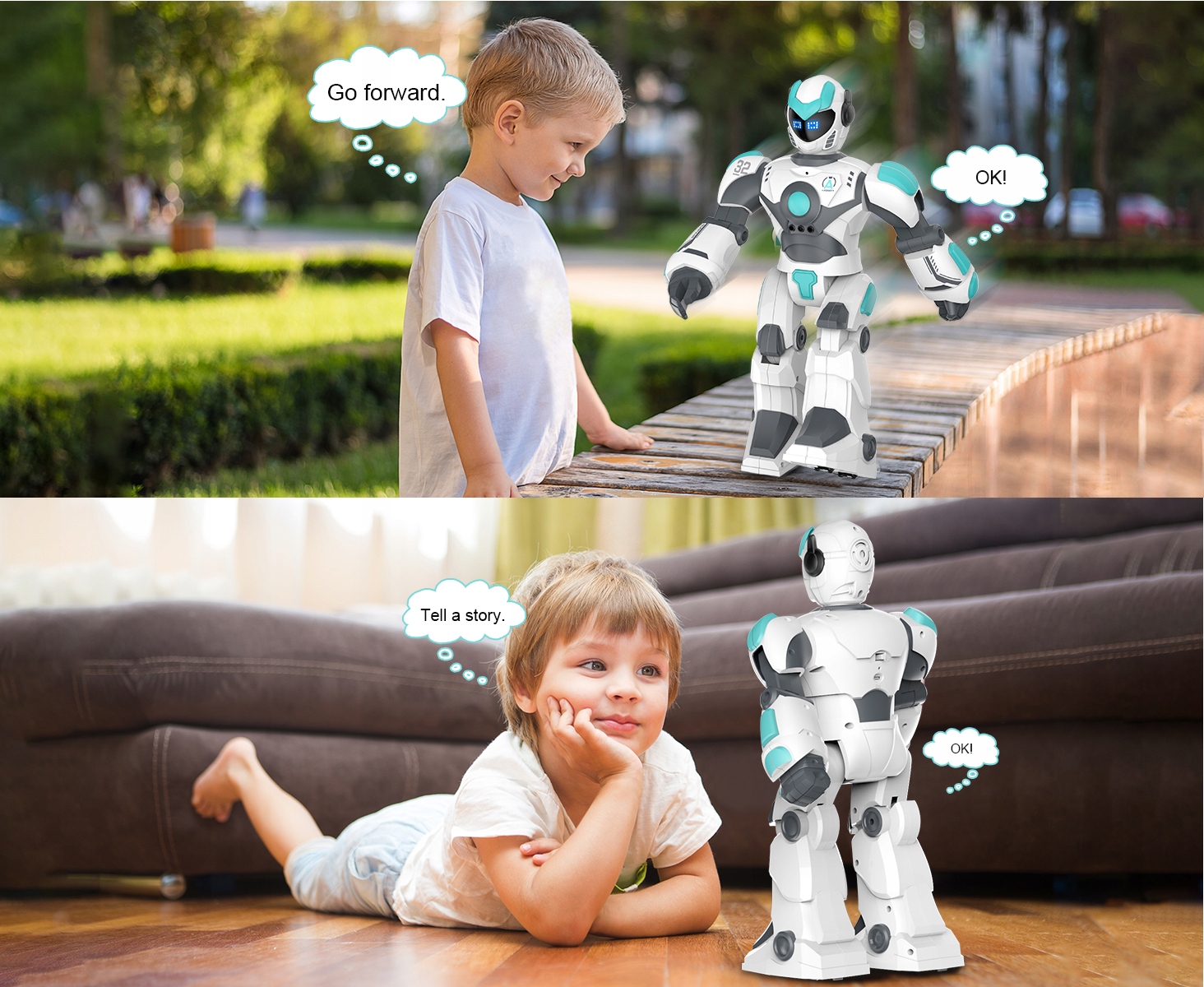 - ☀️Этот робот не только имеет функцию управления голосом и жестами, но также оснащен пультом дистанционного управления, который позволяет выполнять больше операций.