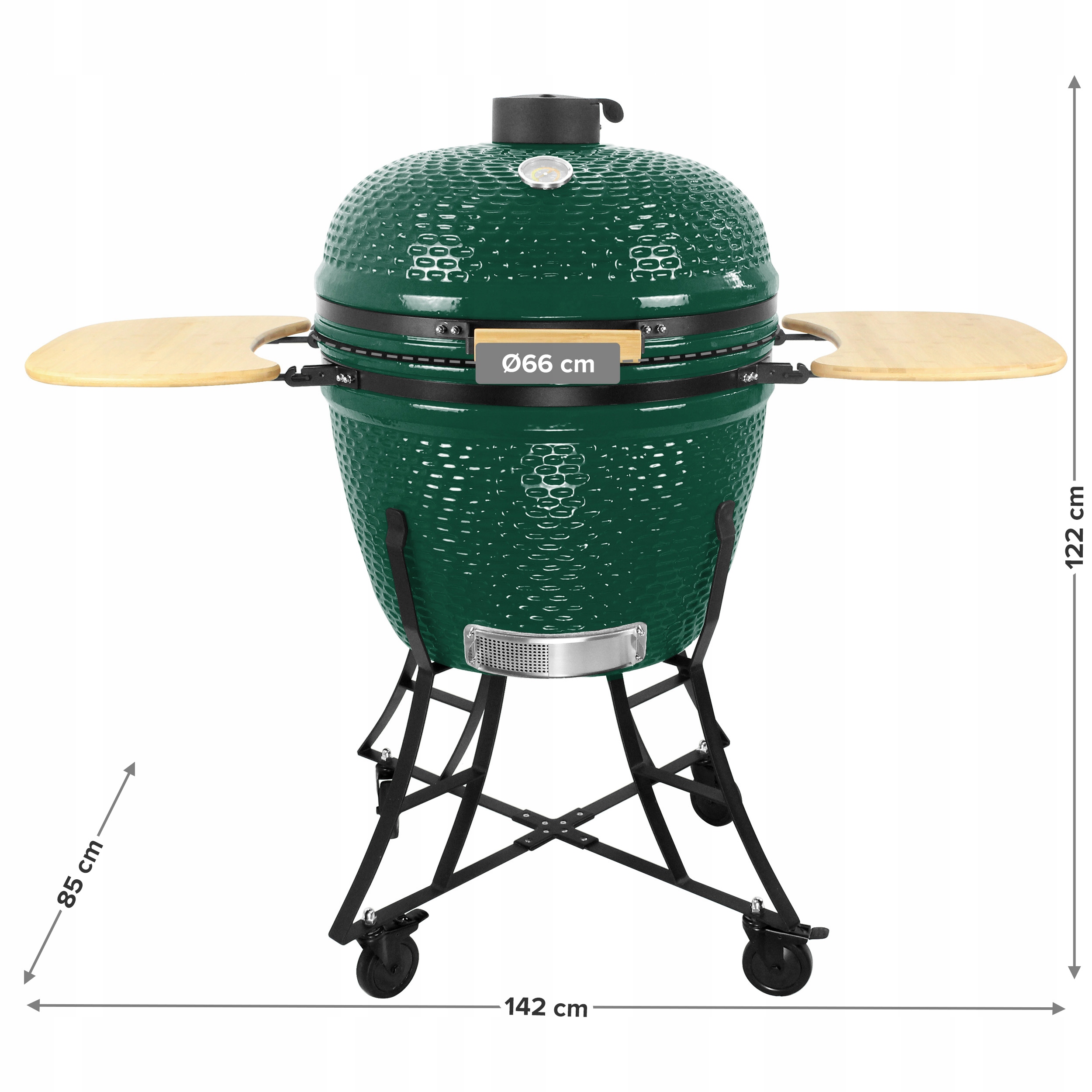 БОЛЬШОЙ КЕРАМИЧЕСКИЙ УГОЛЬНЫЙ САДОВЫЙ ГРИЛЬ 26 ДЮЙМОВ – КРЫШКА, ТЕРМОМЕТР, БОКОВЫЕ ПОЛКИ