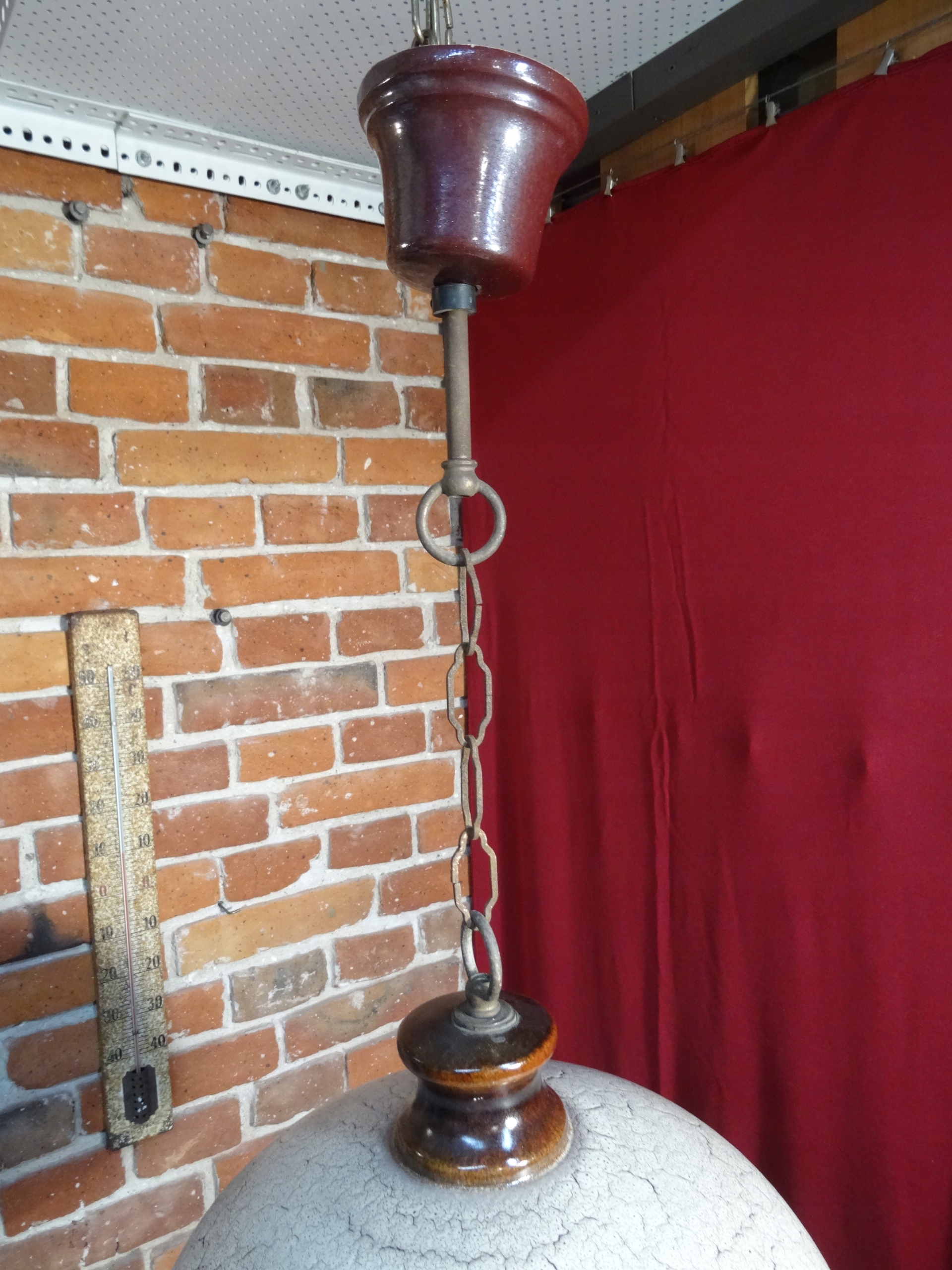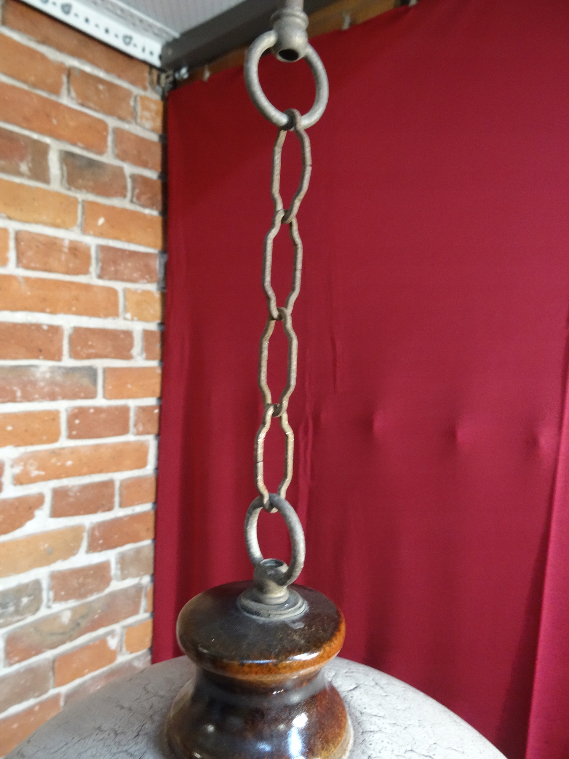 Большой керамический абажур. Оттенки подвесны на металлической цепи, кабельное подключение к керамике, сделанное из керамики.