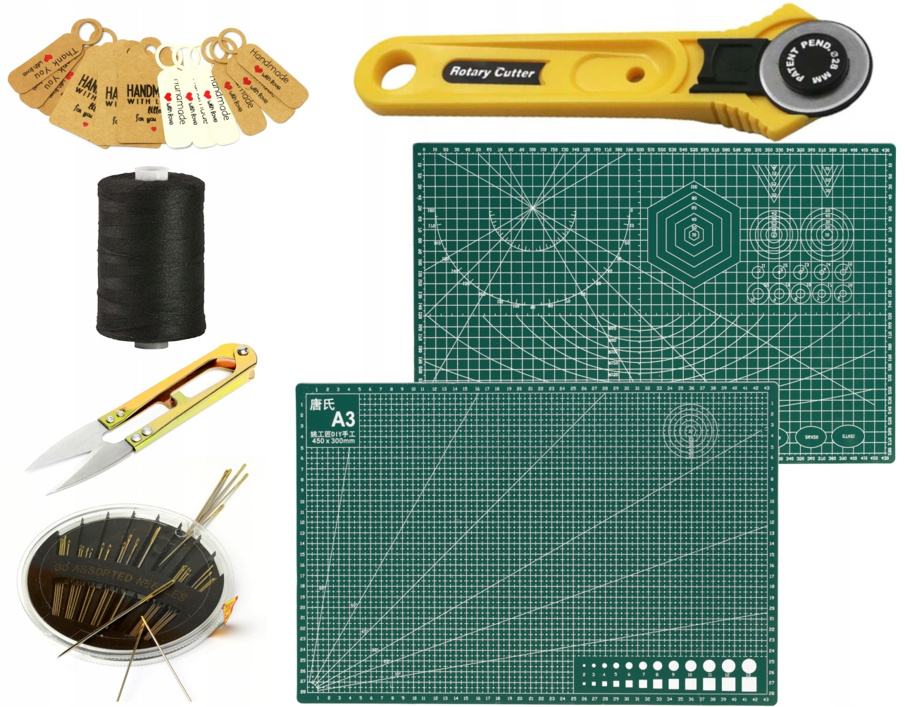 Шитье от А до Я. В упаковке вы найдетенесколько десятков игл различной толщины и длины. Самая универсальная черная нить наверняка пригодится не раз. После шитья вы можете обрезать нитки или другие обрезки ткани с помощью удобного портновского резака.