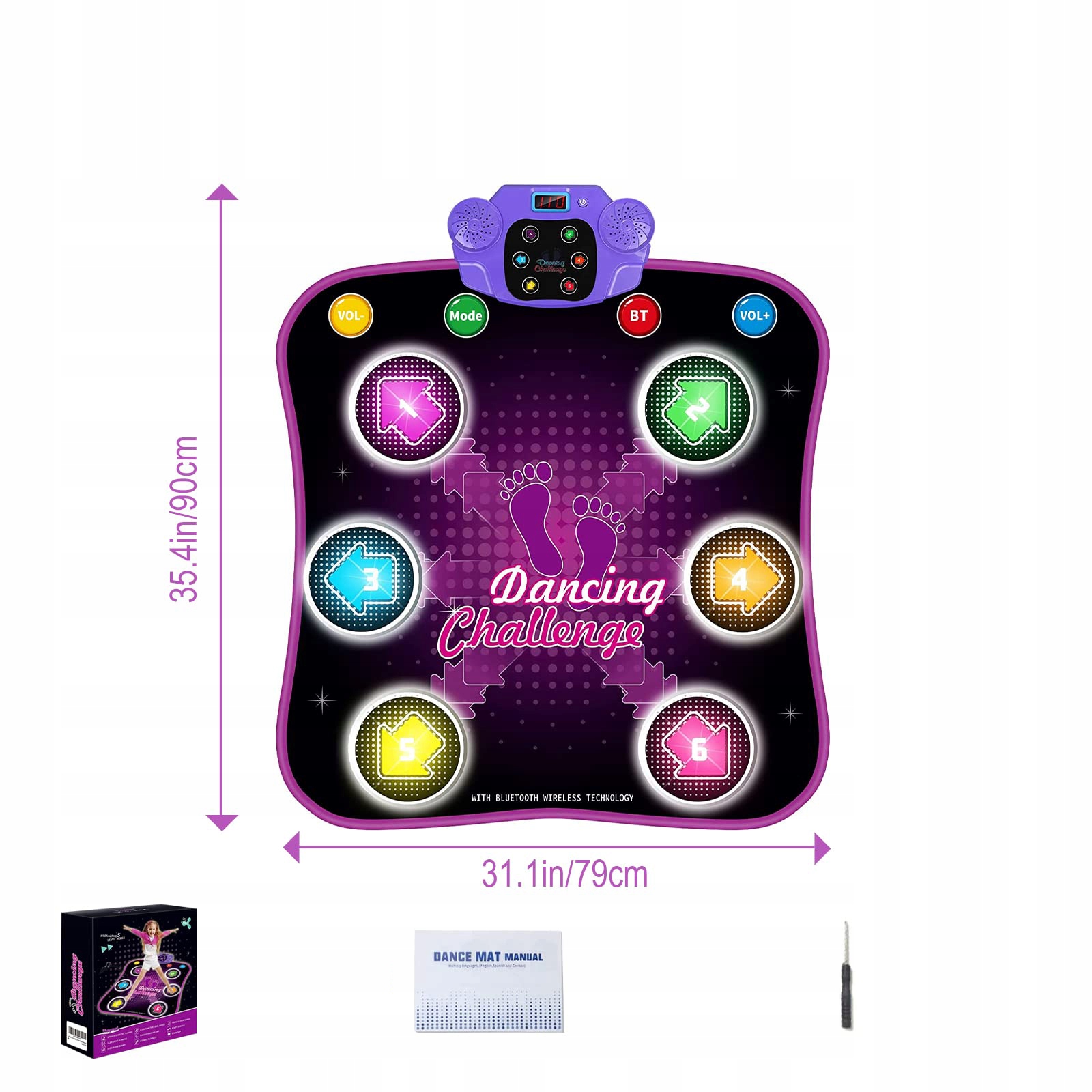 💃 6 стрелок и свечение: По сравнению с танцевальным одеялом с 4 стрелками, наше танцевальное одеяло было обновлено до 6 стрелок, что позволяет детям разучивать более сложные танцевальные движения и делать танцы более интересными. Эти 6 стрелок можно осветлить, что будет выглядеть круче и смешнее. Пусть ваши дети полюбят танцы.