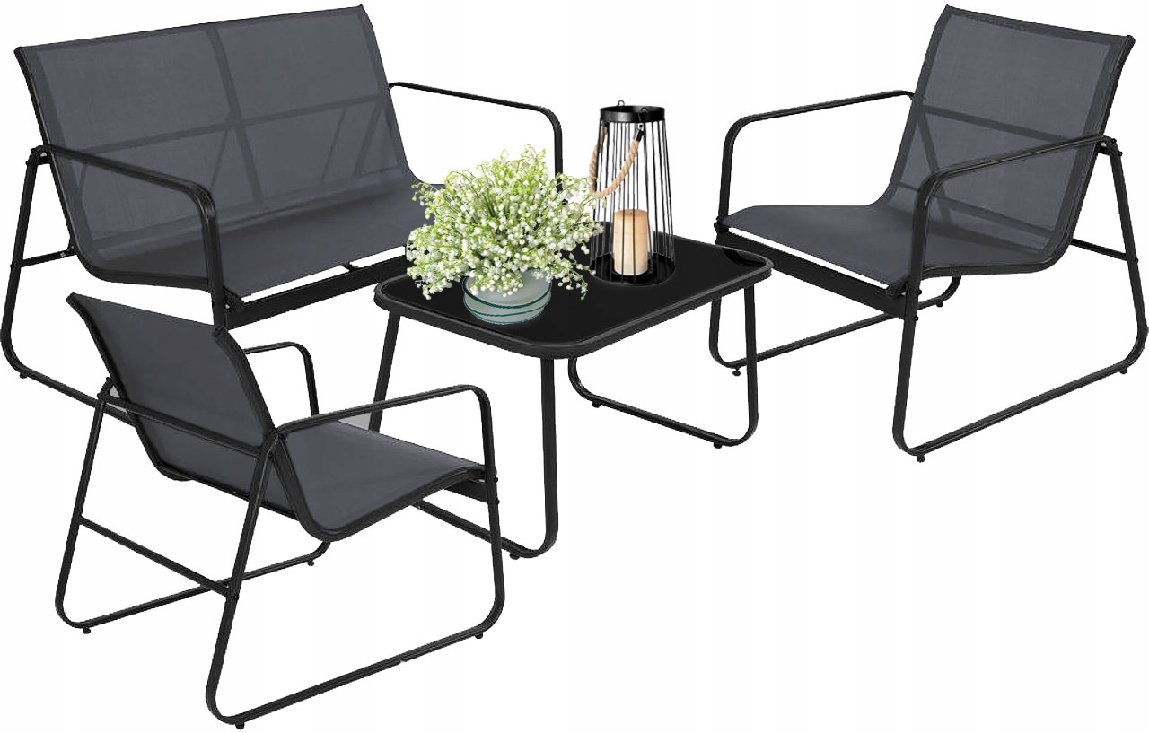 Стол имеет стеклянную столешницу. Благодаря этому комплект становится еще более элегантным и стильным. Простая форма придает ей универсальность и делает этот комплект подходящим для любого сада и террасы.