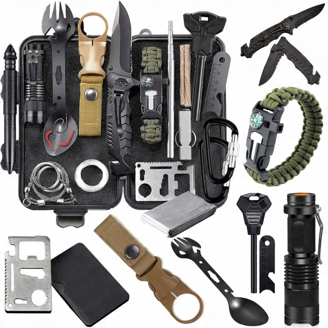 Военный профессиональный набор для выживания в лесу, большой набор для выживания, 24 предмета, нож, фонарик, пила, подарок для мужа, парня, дедушки, солдата-разведчика