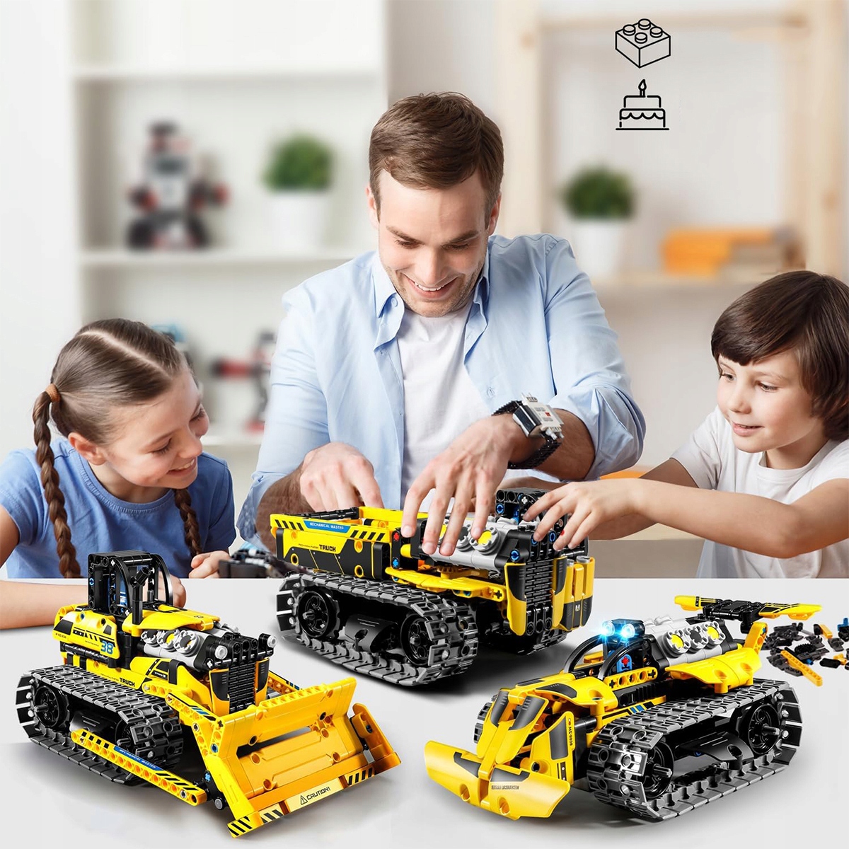 YOUKUKE 3 в 1 Набор игрушек для сборки автомобиля с дистанционным управлением и аккумуляторной батареей, 452 предмета Бульдозер Самосвал Гусеничный автомобиль, технические наборы STEM Конструкторы Подарки для детей Мальчики 6–12 лет