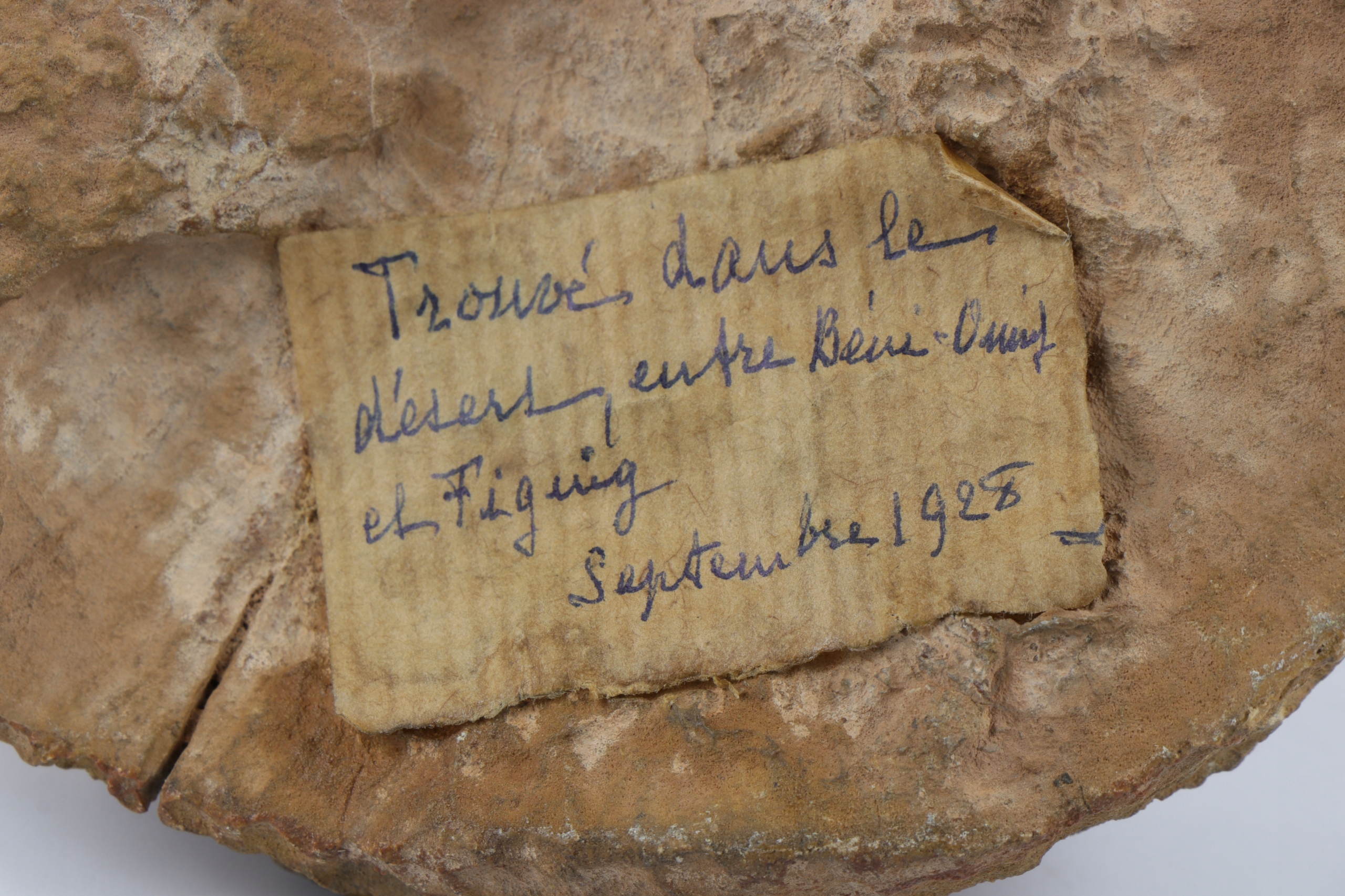 Коралл, найденный в сентябре 1928 года в пустыне между Бени-Унифом и Фигуигом, в настоящее время недалеко от границы Марокко и Алжира. На другом аукционе предлагаю аммонит, скорее всего найденный в то же время.