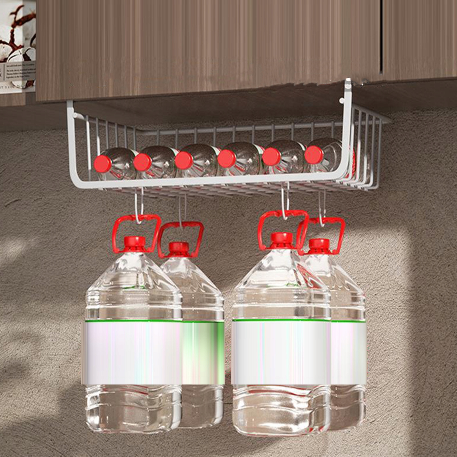4. Легко в использовании: Организатор с корзиной для полки под шкафом не требует установки и может быть легко установлен на висящем шкафу путем подвешивания.