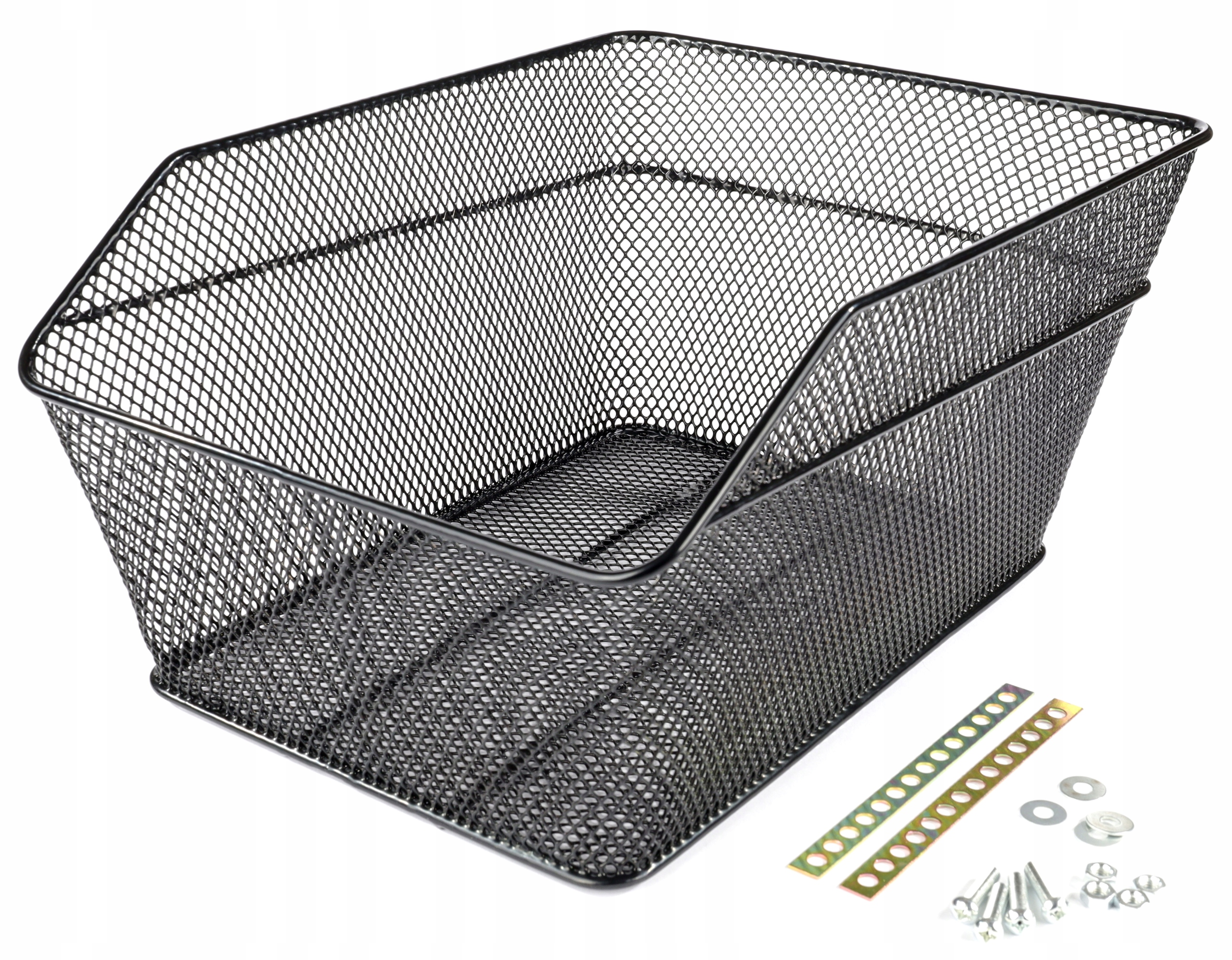 Большая сплошная металлическая корзина Прикрепленный к задней или передней велосипедной багажнике - это очень практичный аксессуар, который позволяет транспортировать различные нагрузки в повседневных мероприятиях, но также идеально подходит для поездок. Корзина изготовлена ​​из прочной стали , покрытой анти -коррозивным лаком порошка, защищающего от ржавчины. Набор включает в себя металлические полосы с винтами, предназначенными для прикрепления корзины к багажнику, благодаря которой корзина стабильна