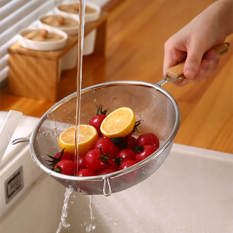 Практичное и прочное сито из нержавеющей стали — незаменимый инструмент для каждого повара. Глубокая чаша с мелкими отверстиями и ручкой делает процесс процеживания простым и безопасным.