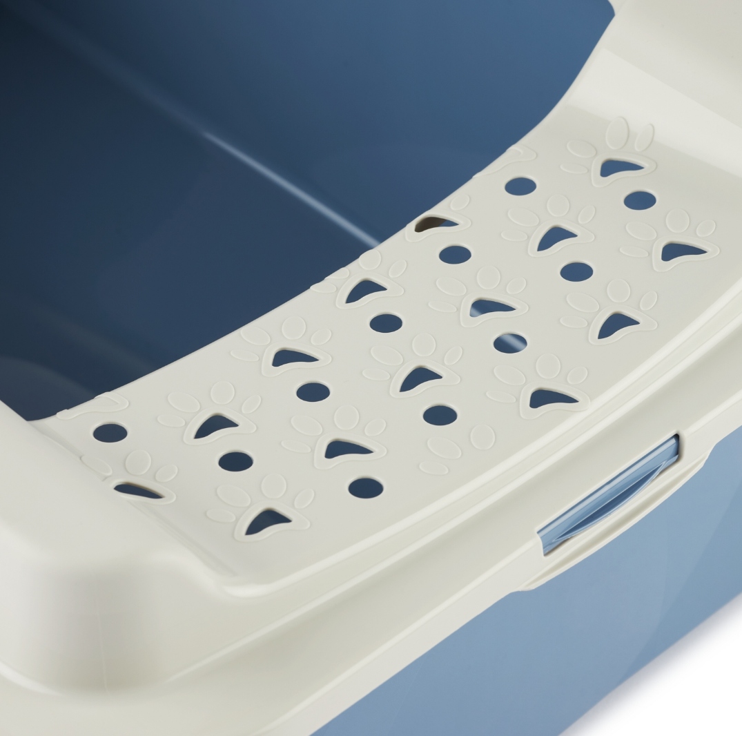 Кошачий лоток оснащен рамкой, которая эффективно предотвращает высыпание гравия за пределы лотка. Это значительно упрощает поддержание чистоты туалетного лотка, а кошачий туалет не создает ненужного беспорядка. Кроме того, специально разработанные отверстия в крышке не позволяют носить наполнитель на лапах, сохраняя чистоту вокруг туалетного лотка.